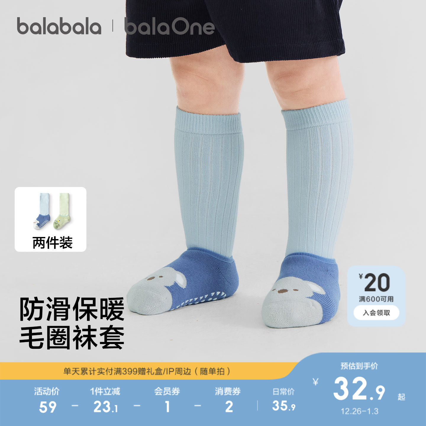 【balaOne】巴拉巴拉宝宝袜子冬保暖袜婴幼儿地板袜防着凉三双装