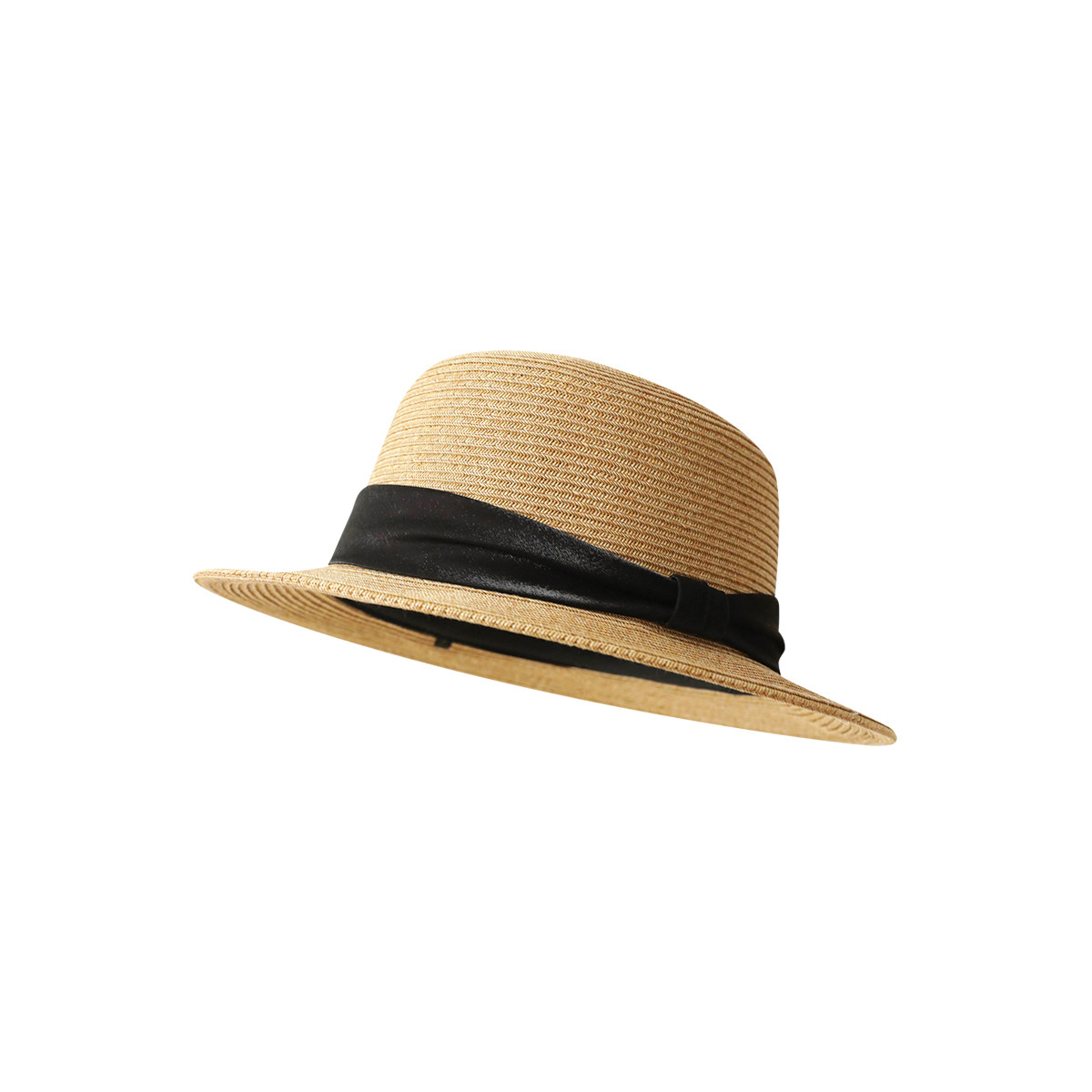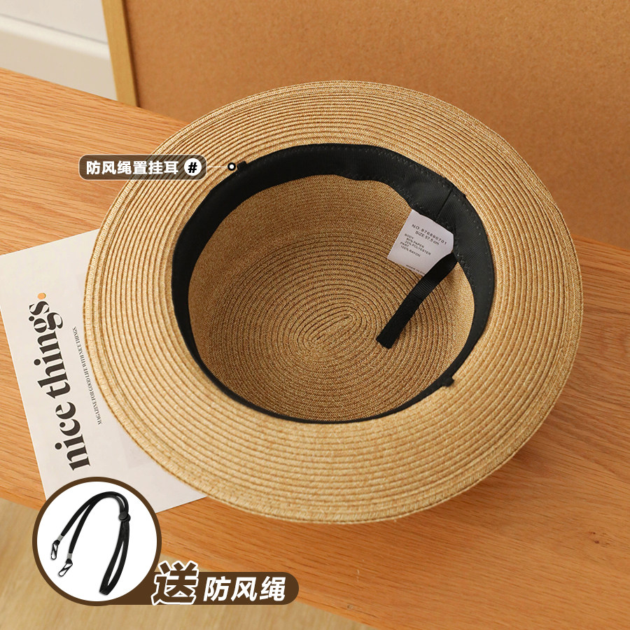 时尚赫本风草帽子女法式平顶礼帽英伦遮阳简约百搭晒显脸小平沿帽