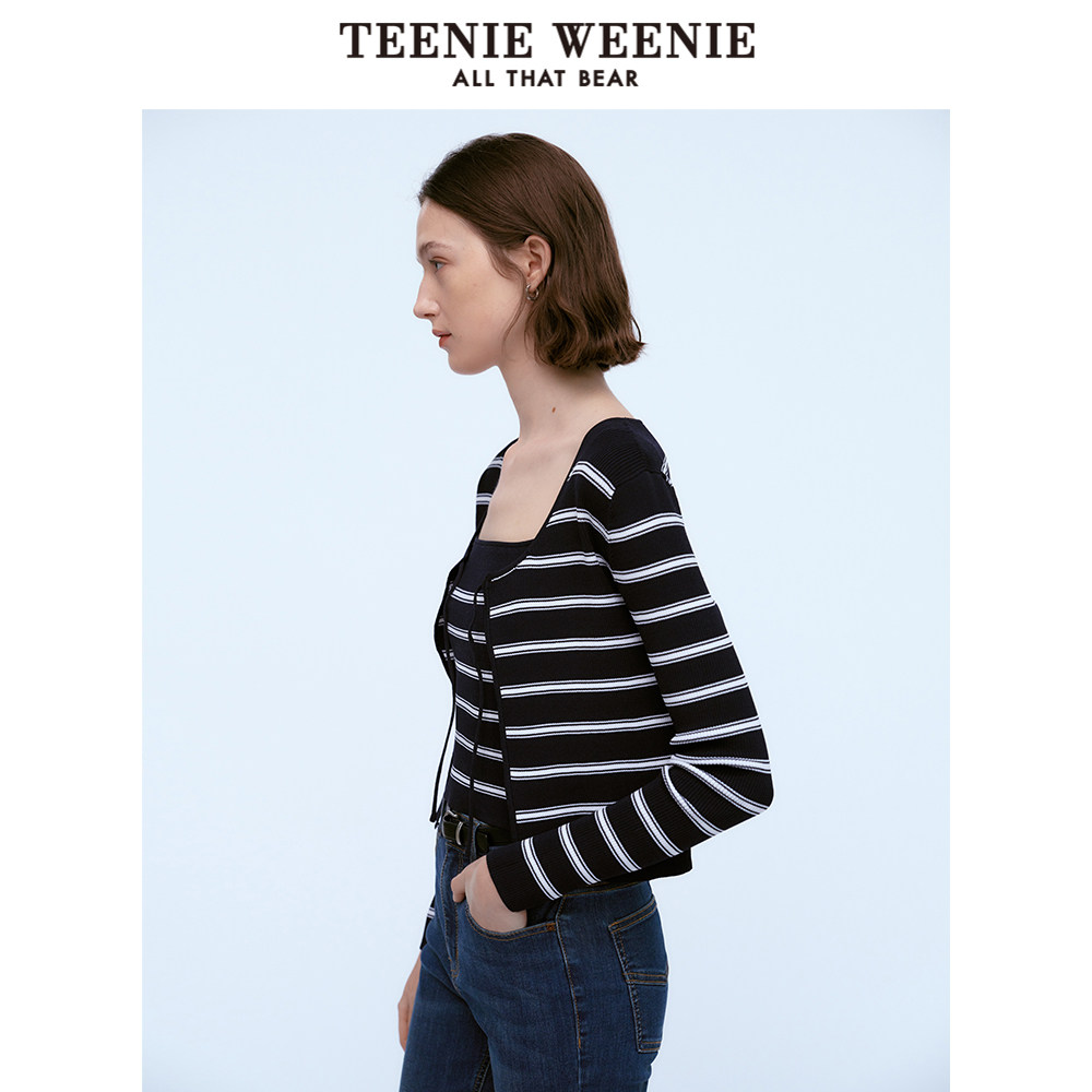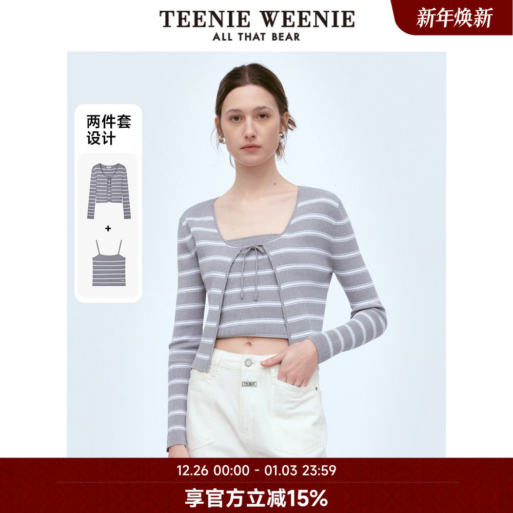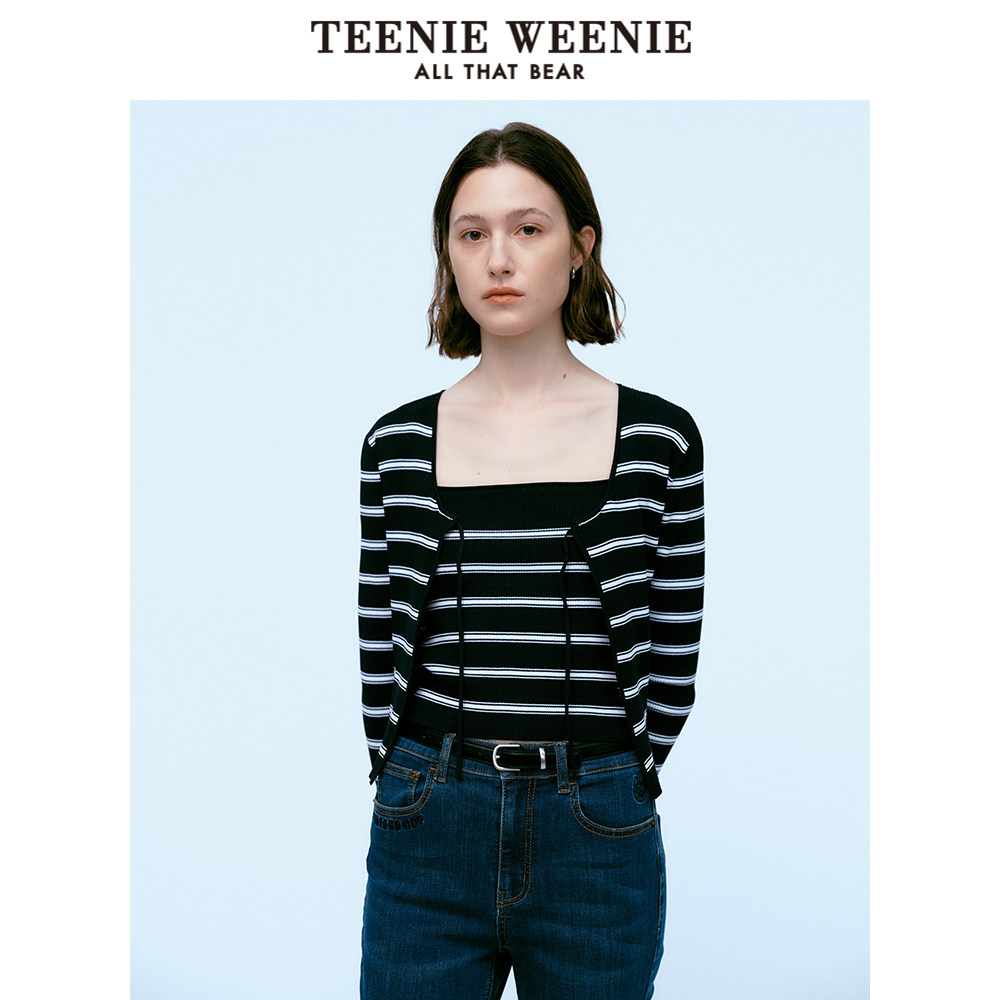 TeenieWeenie小熊奥莱格雷系带条纹两件套针织衫外套吊带背心
