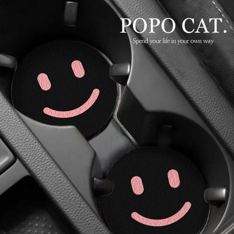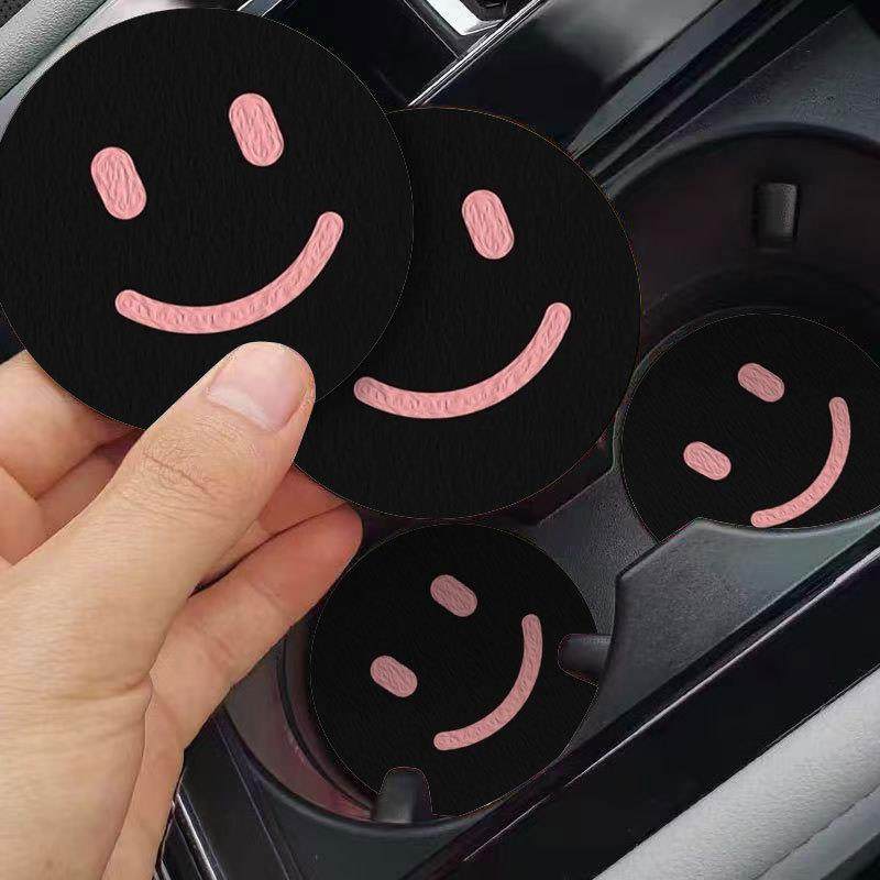 简约笑脸汽车杯垫门槽置物垫子车内饰用品卡通车载防滑垫置物垫