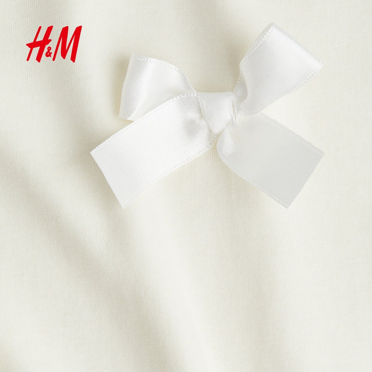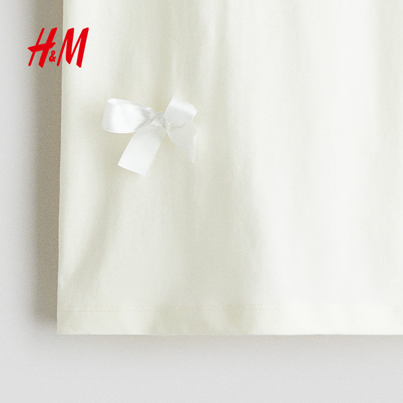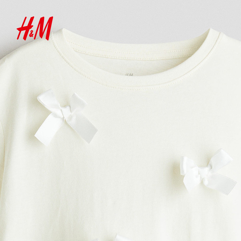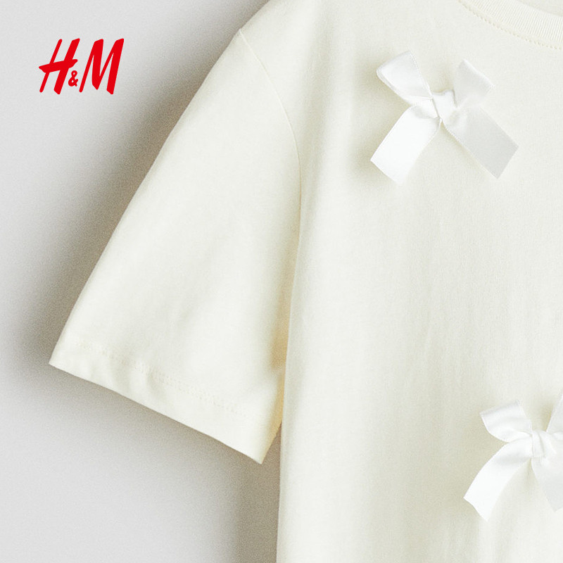 HM童装儿童女童T恤2025冬新款柔软蝴蝶结挂饰圆领短袖上衣1302424