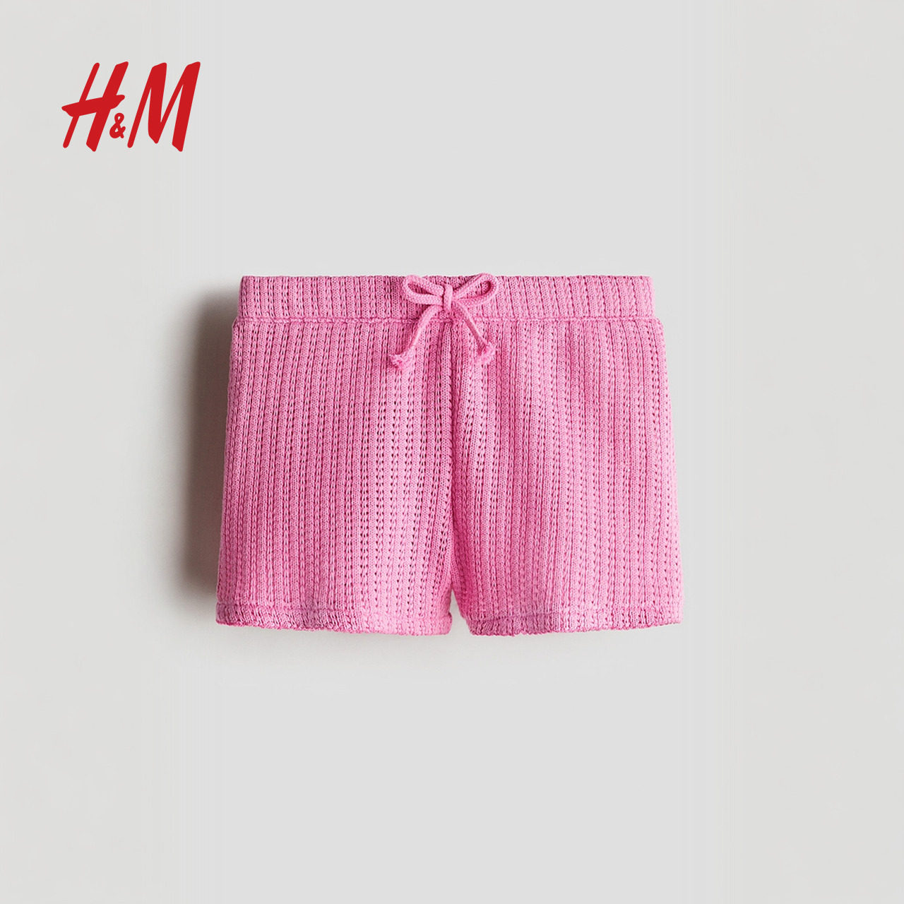 HM童装儿童女童短裤2025年新款樱桃红简约纹理感针织短裤1290053