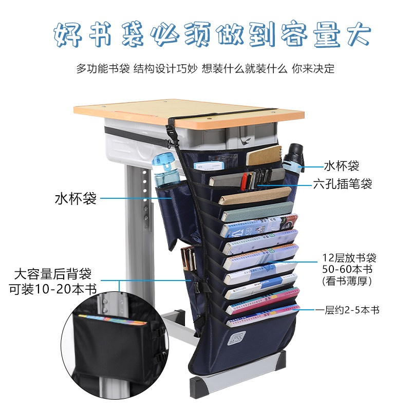 书袋课桌收纳学生挂书袋大容量高中生桌边放书袋书本侧面挂袋神器