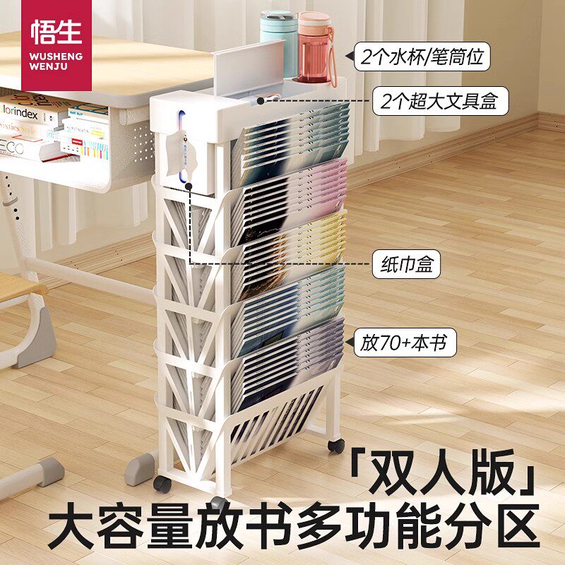 悟生课室头等舱课桌收纳神器书本收纳架学生桌边书架可移动带轮教室书桌置物架书箱高中初书袋挂袋书立架桌面