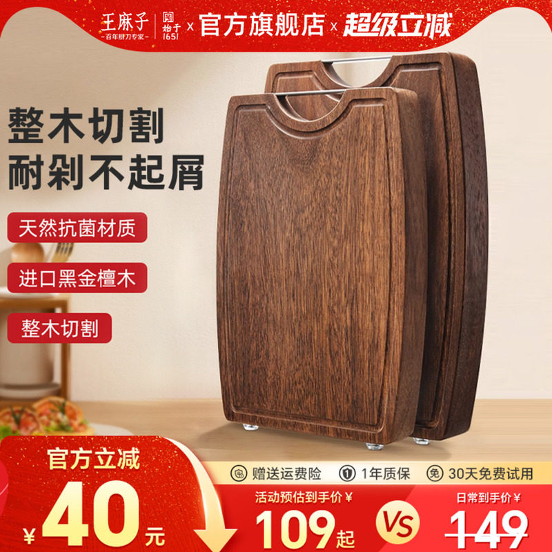 王麻子家用菜板抗菌防霉木质砧板厨房专用黑金檀木案板官方旗舰店
