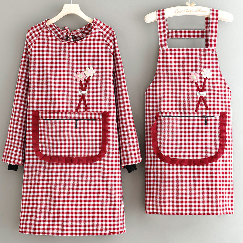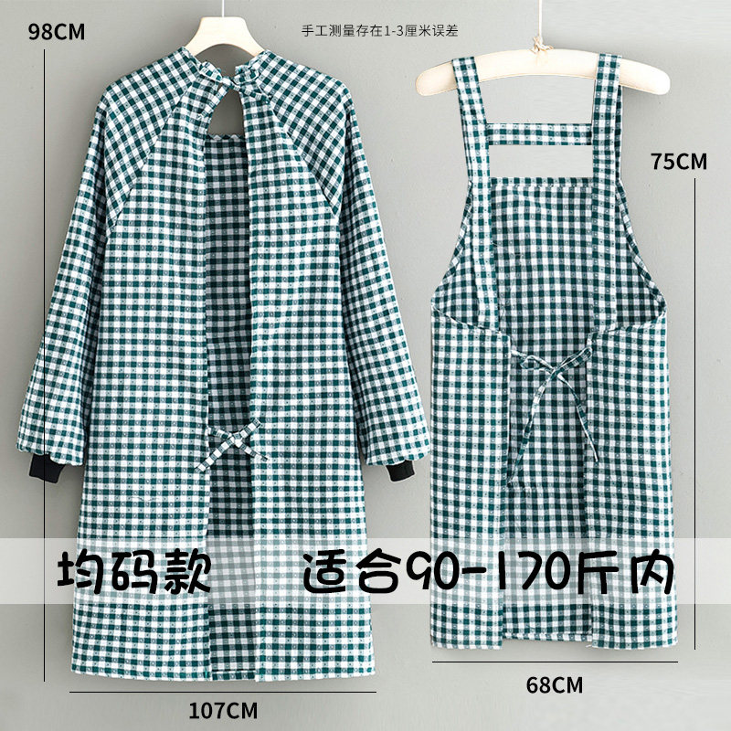 新款棉布耐磨围裙长袖厨房家用防污罩衣透气围腰做饭上班工作服女