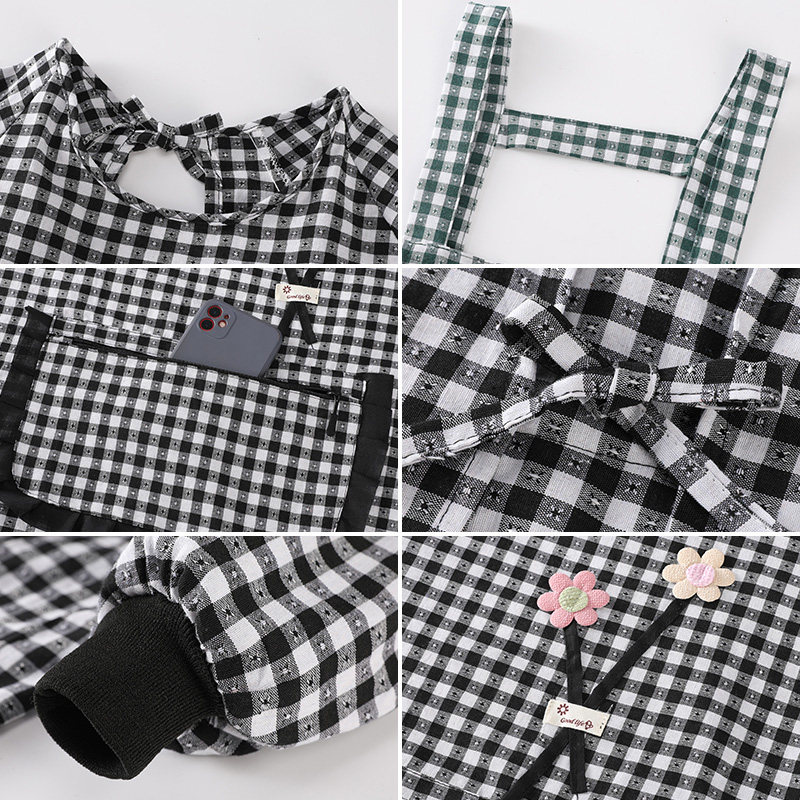 长袖罩衣防油格透气围裙家用厨房时尚女餐饮工作服成人耐脏背带