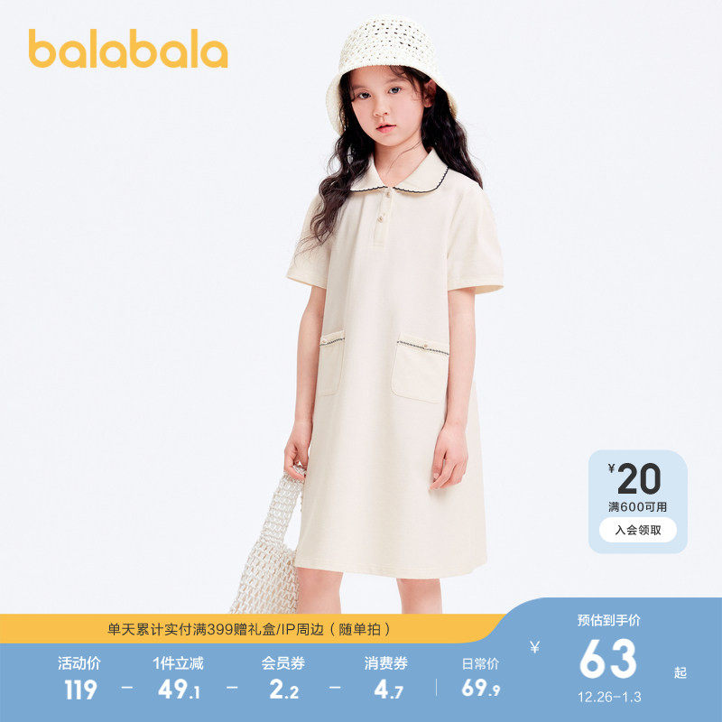 巴拉巴拉童装女童裙子夏装连衣裙A型POLO裙中大童时尚舒适宽松潮