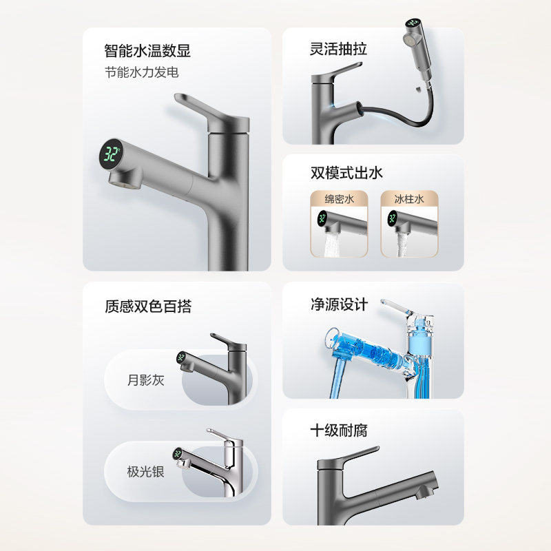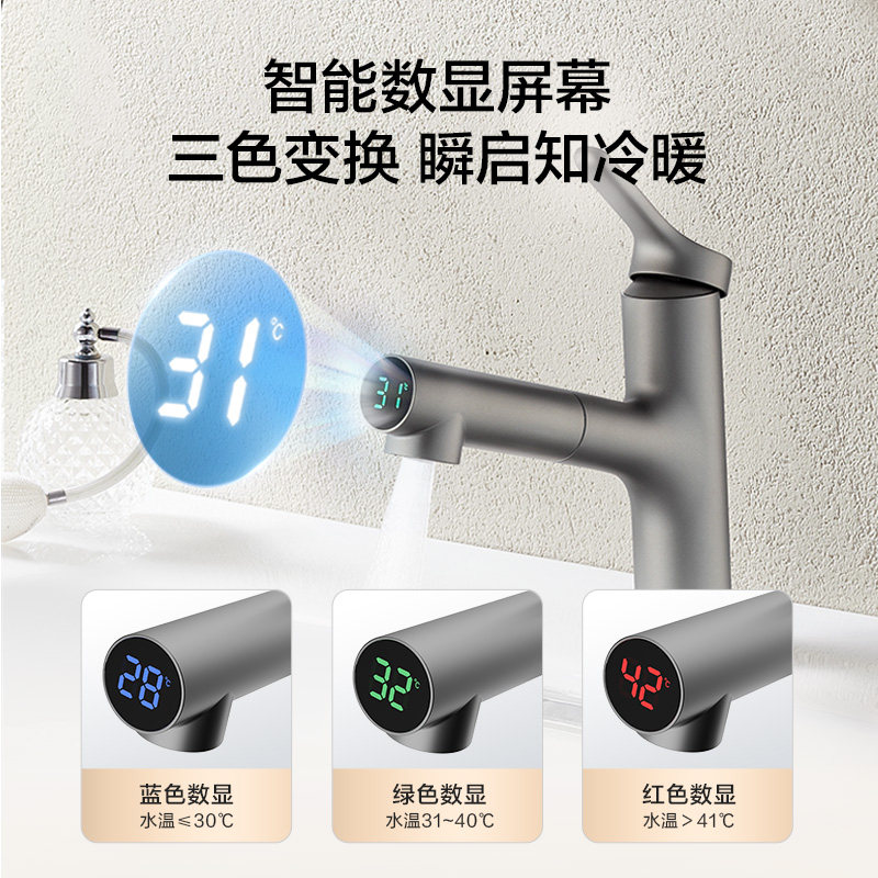恒洁水龙头面盆龙头浴室洗脸盆洗手盆卫生间家用抽拉智能数显龙头