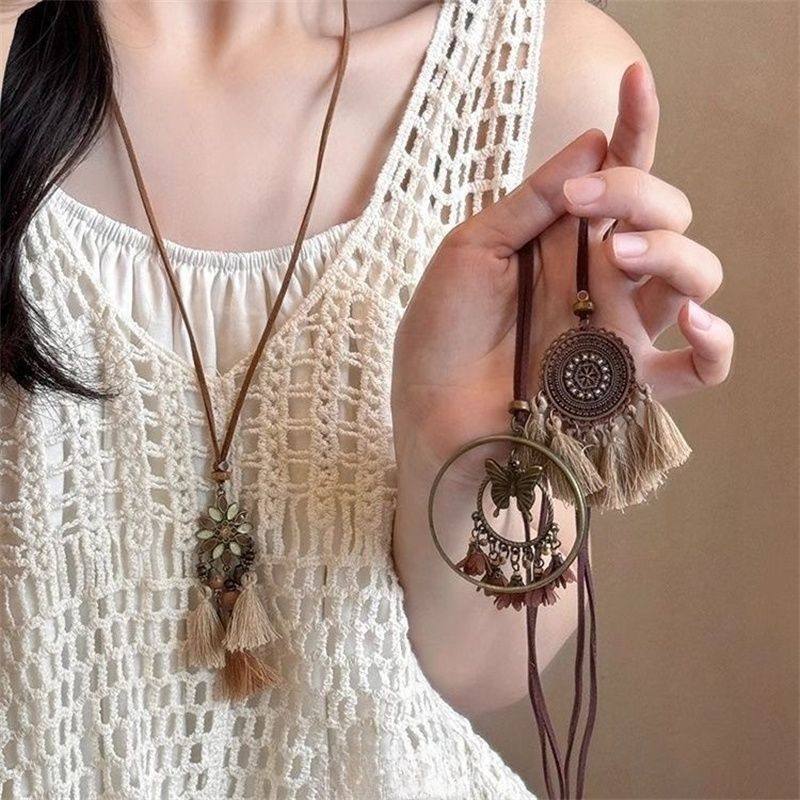现货橡果森系植物干果毛衣链长款风配饰男女手工编织棉麻服饰项链