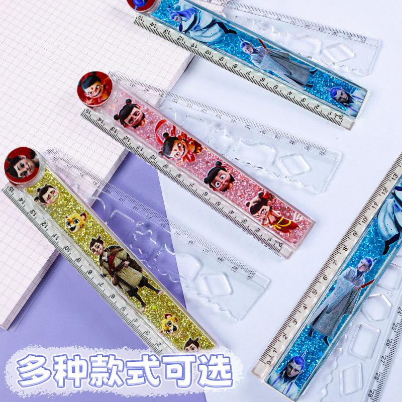 尺子幼儿园流沙折叠卡通可爱入油小学生30cm折叠水晶尺子小哪吒申公豹敖丙新款绘画尺格尺2025动漫卡通