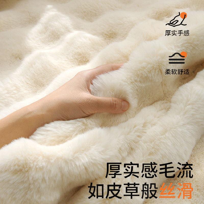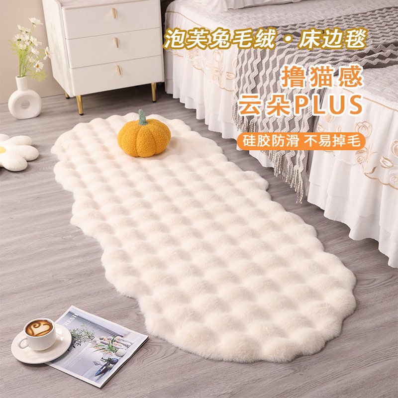 仿兔毛卧室床边地毯儿童床毯泡泡毛绒地垫飘窗垫客厅沙发垫子白色