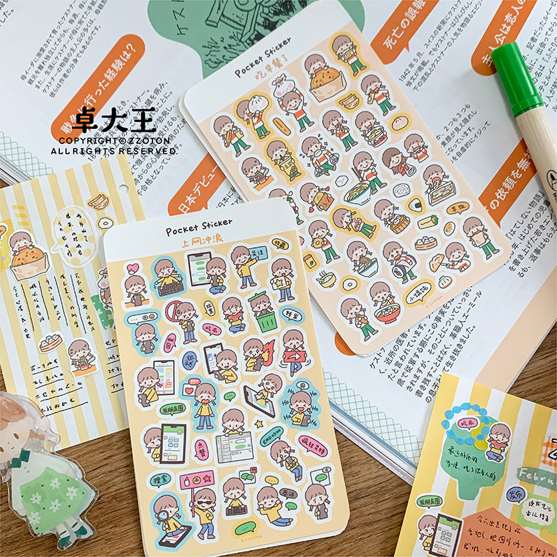 卓大王【阿卓口袋贴纸1-8弹合集】mini贴纸日常卡通易携带手帐