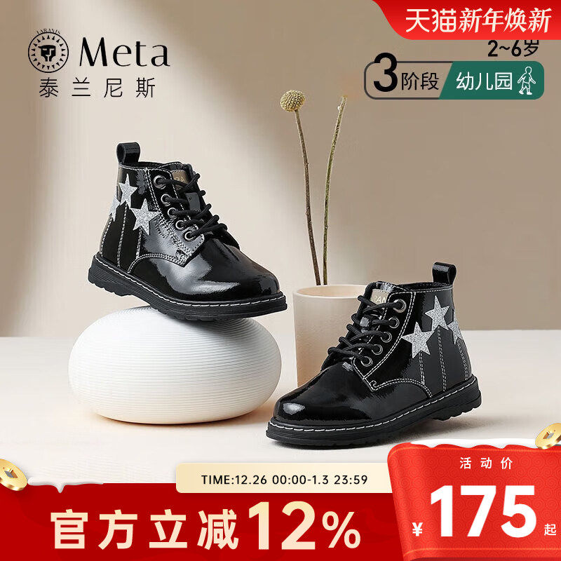 泰兰尼斯meta秋冬女童鞋甜酷马丁靴儿童靴子短靴小童软底真皮单靴