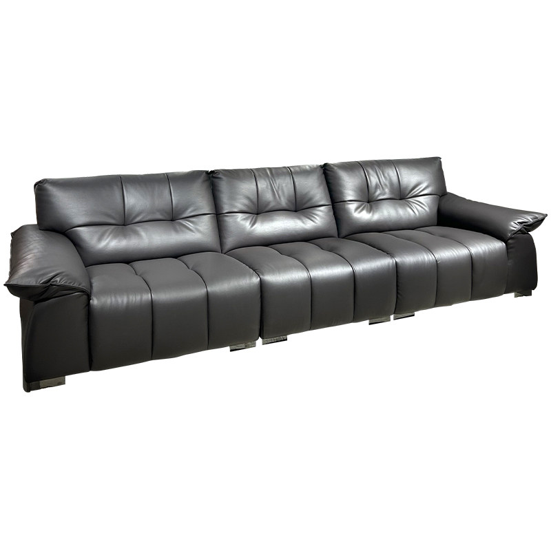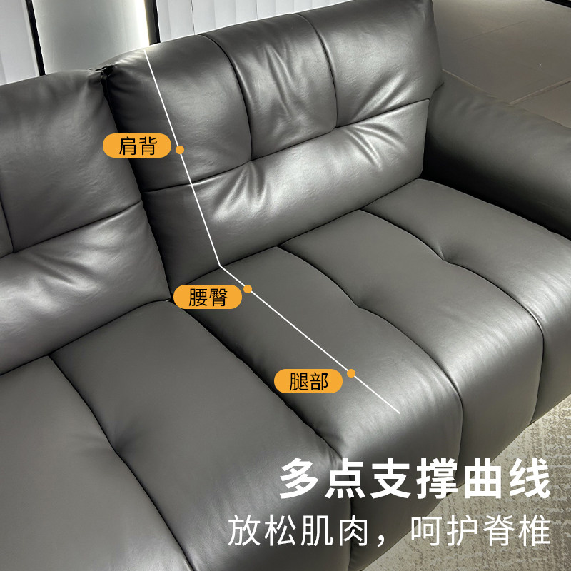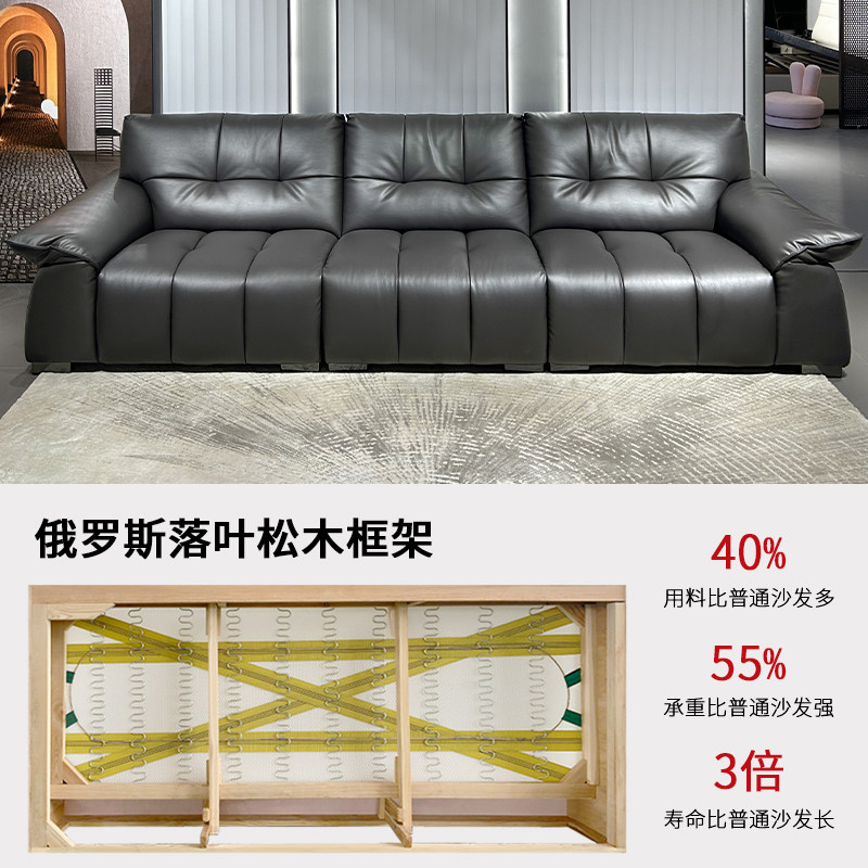 太空云朵沙发意式极简大小户型现代简约头层牛皮直排黑色真皮沙发