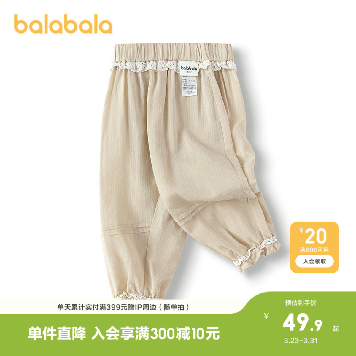 【商场同款】巴拉巴拉宝宝裤子女童防蚊裤夏季宽松舒适潮纯棉柔软