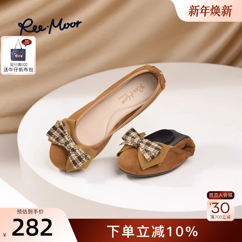 REEMOOR睿慕2025秋季新款法式蝴蝶结浅口女休闲通勤单鞋蛋卷鞋