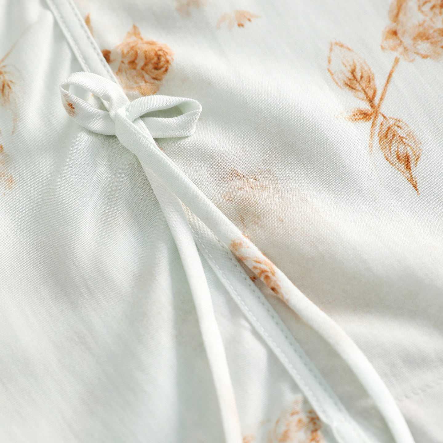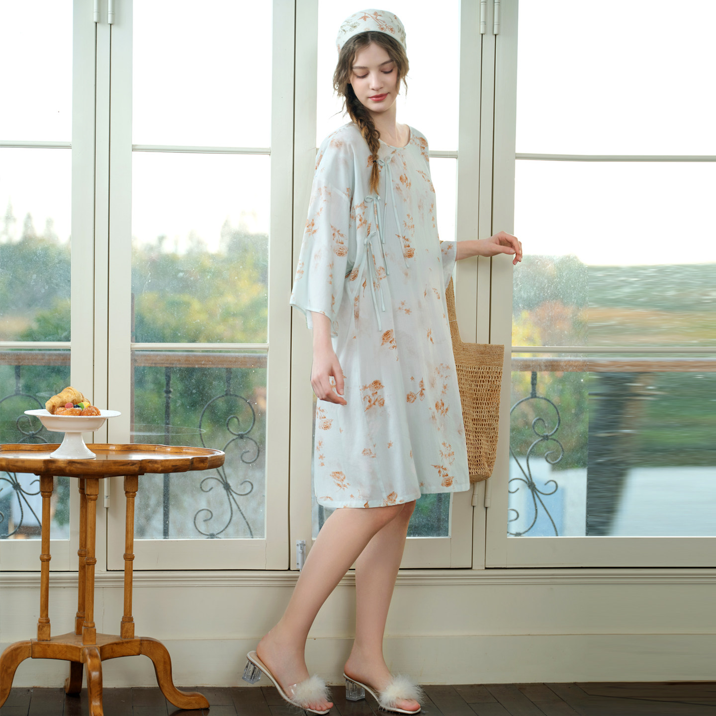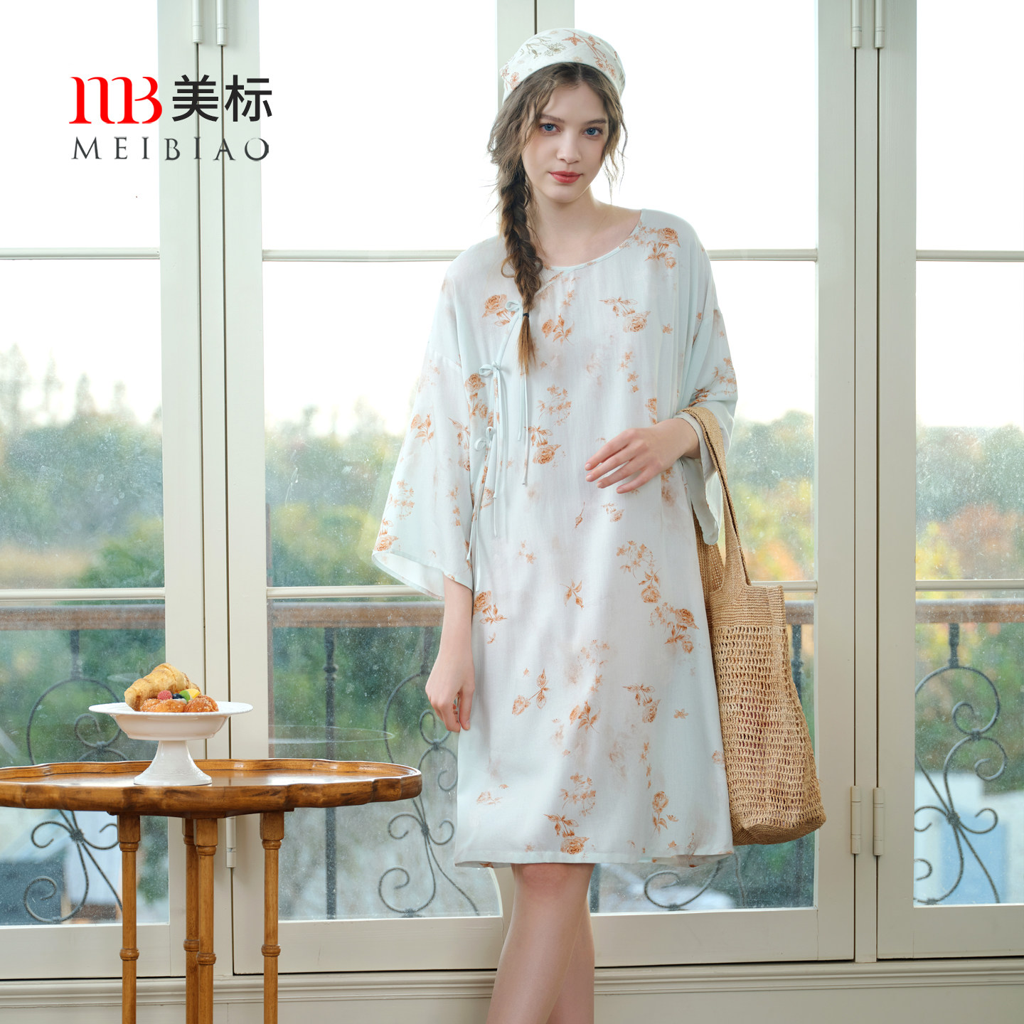 美标新款七分袖薄款睡裙女春夏复古新中式中国风睡衣碎花家居服秋