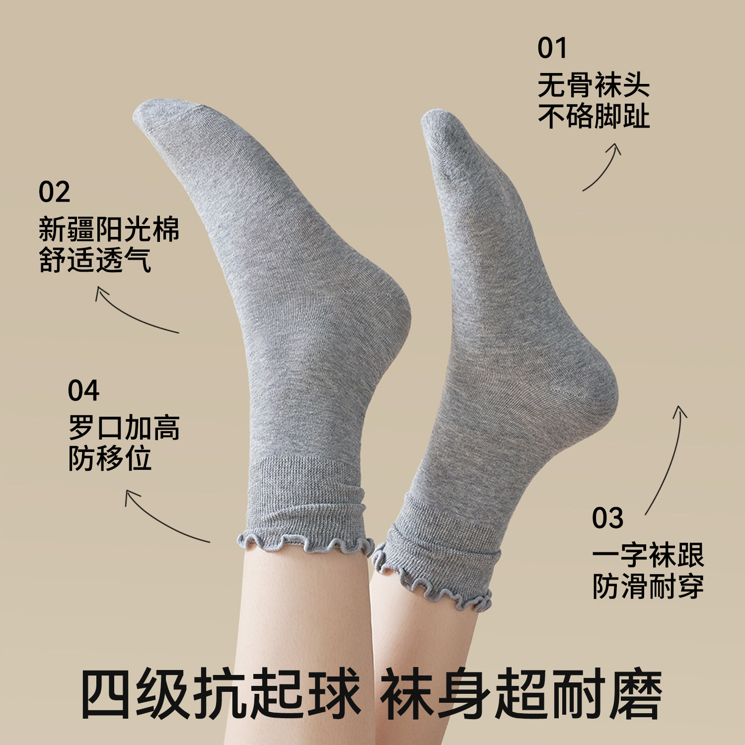 都市丽人袜子女款中筒袜春季可爱吸汗透气防臭无骨木耳花边堆堆袜