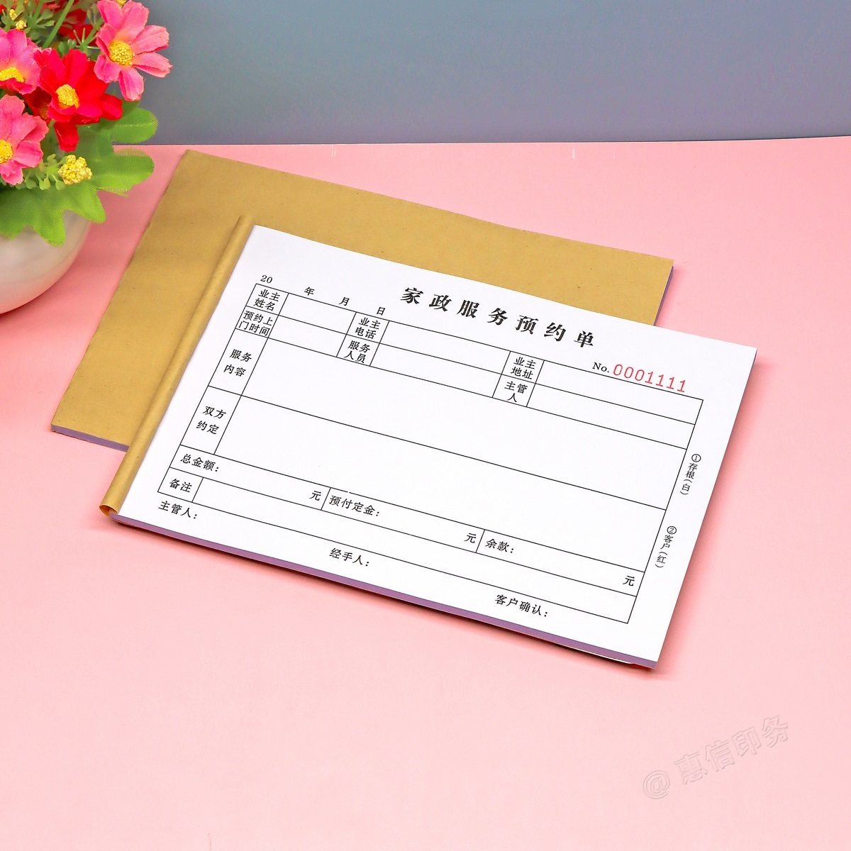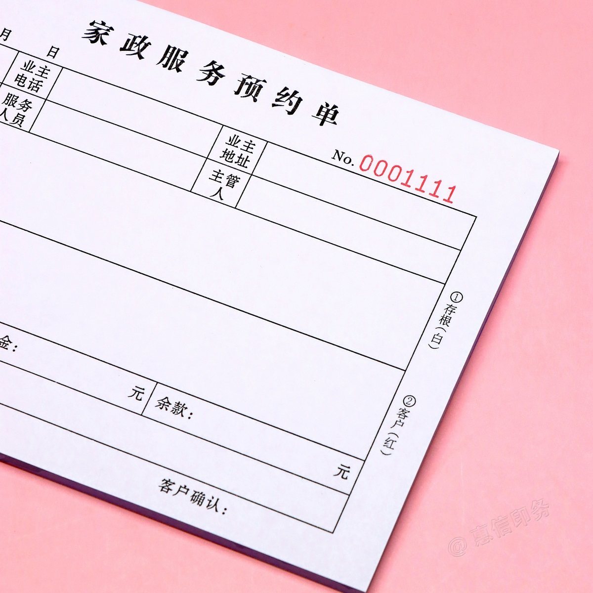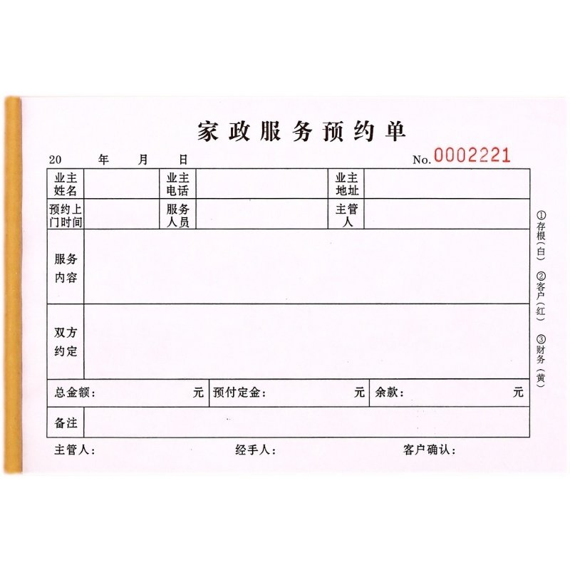 家政公司清洁预约服务单订做二联三联家庭开荒保洁消毒服务接单本
