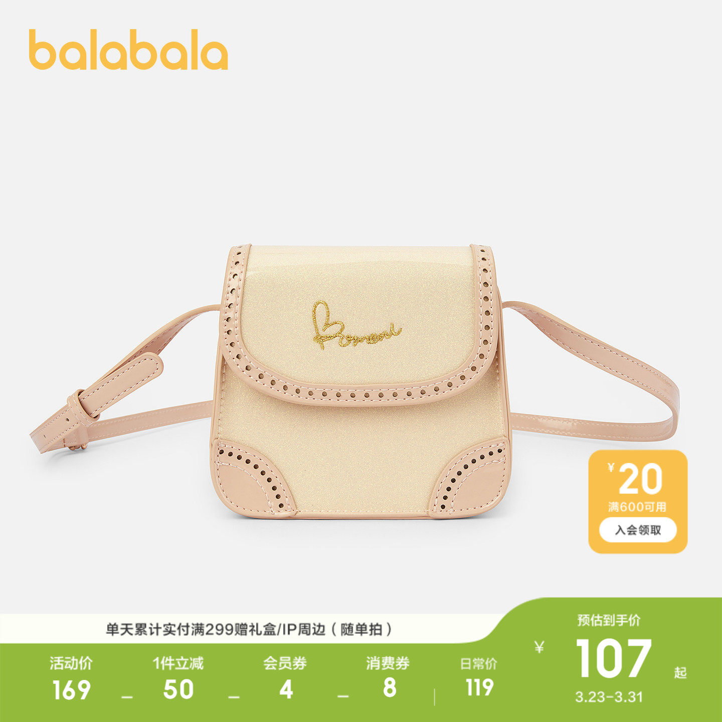 【商场同款】巴拉巴拉儿童休闲包女童蝴蝶结水桶斜挎背包甜美可爱