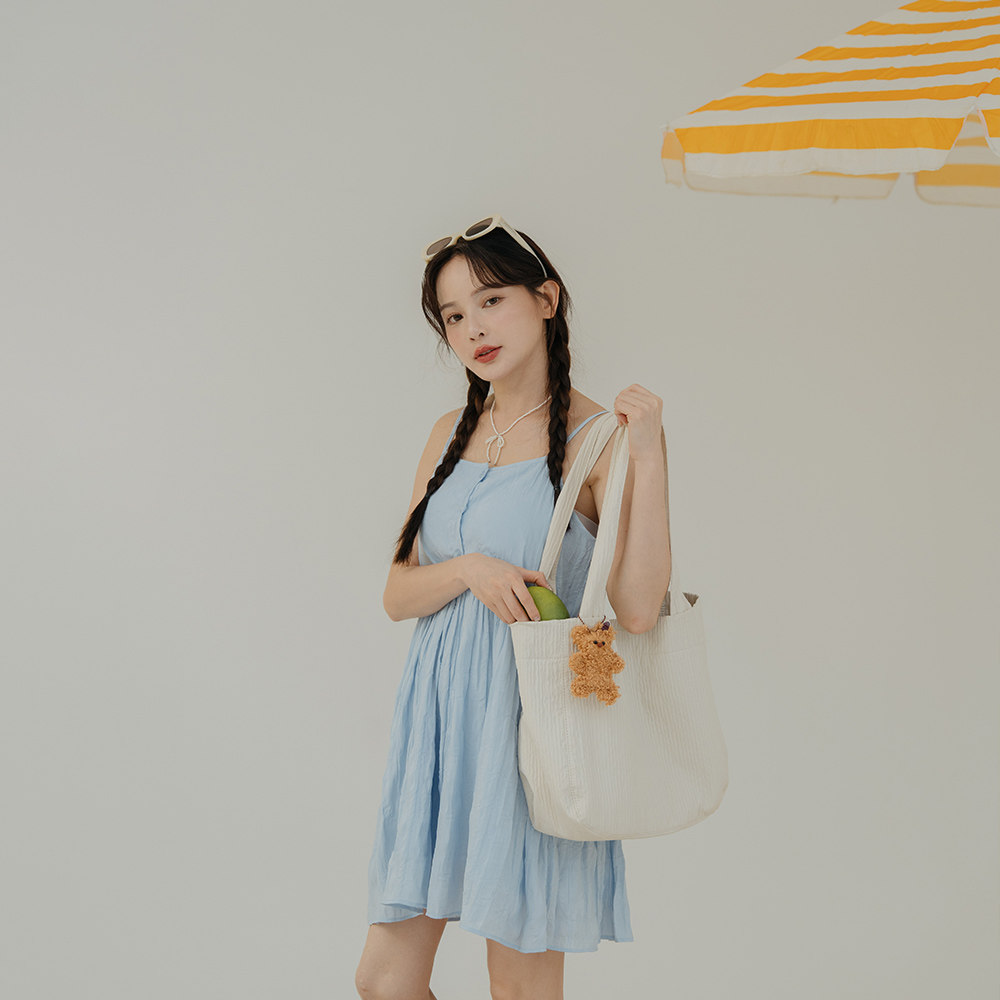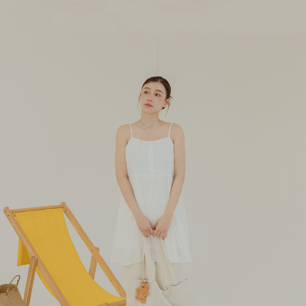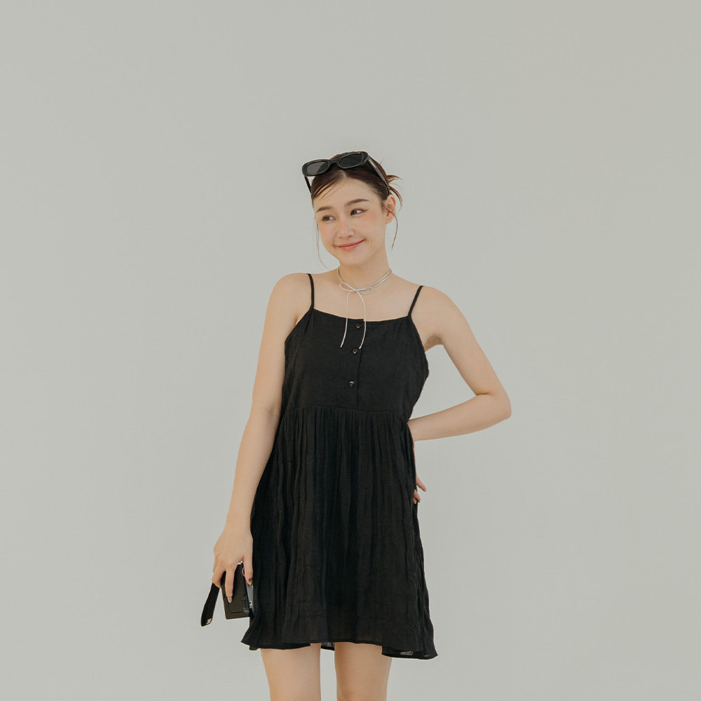 QUEENSHOP 2025春夏新品女装微光泽皱皱纹理细肩短连衣裙01087087