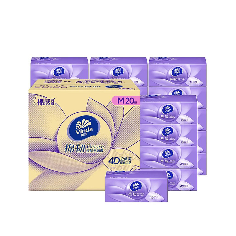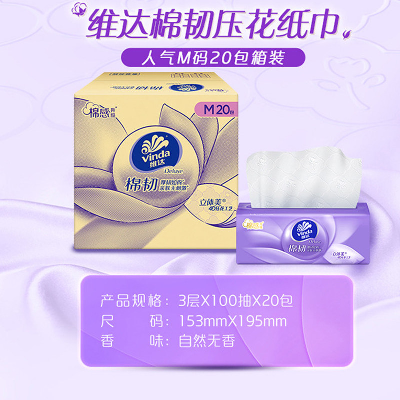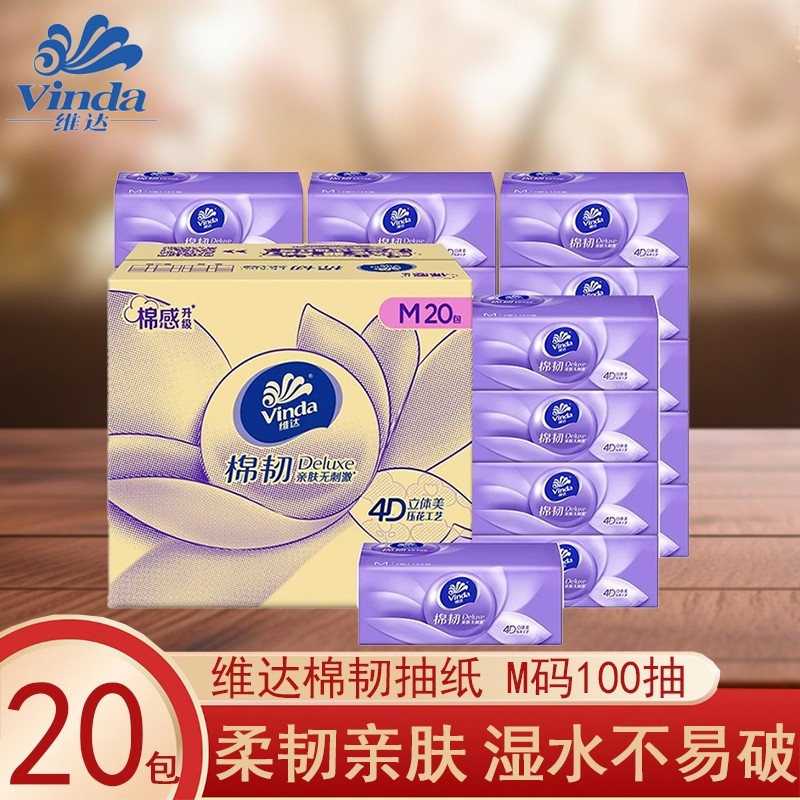 维达抽纸棉韧M码100抽20家用实惠装餐巾纸卫生纸面巾纸积分压花