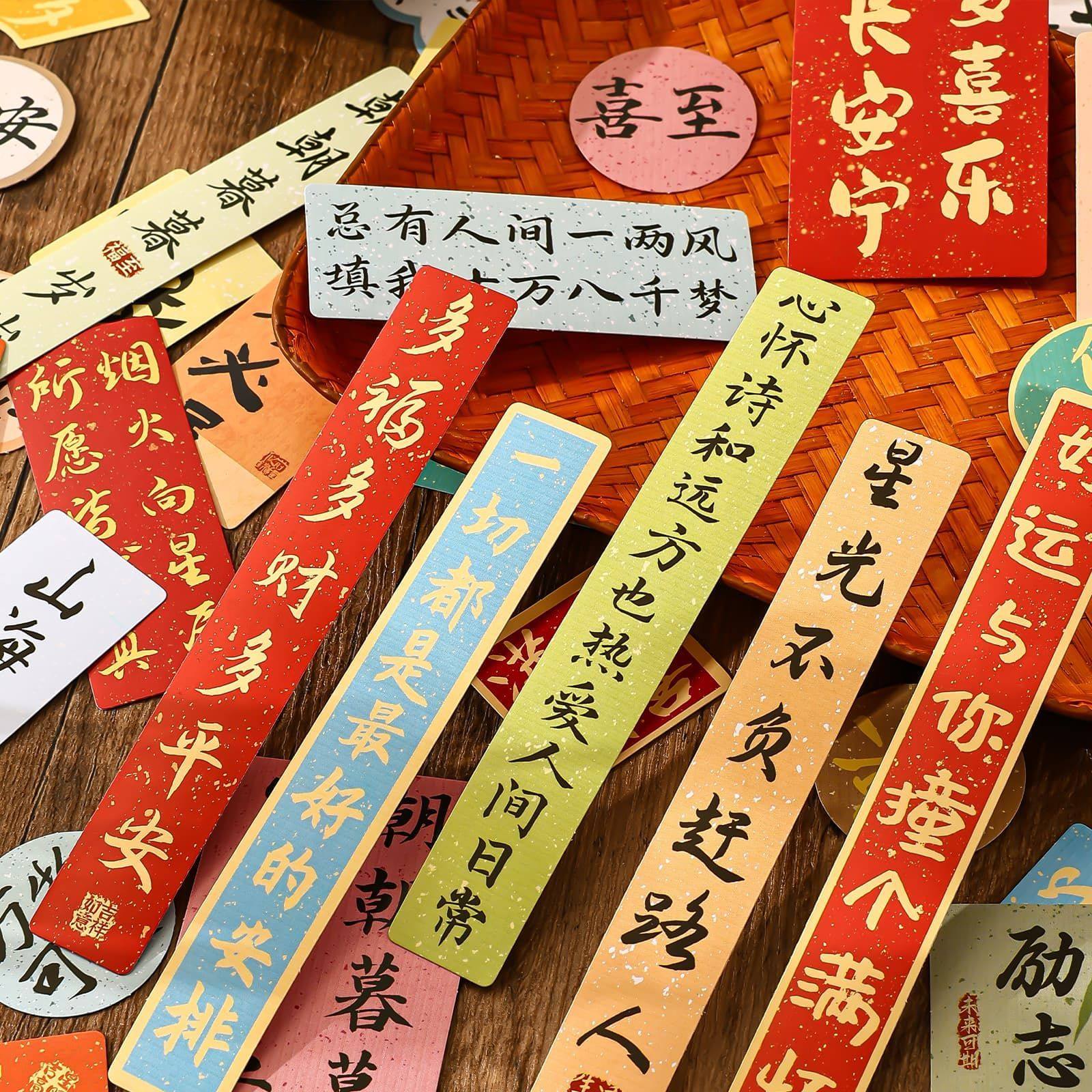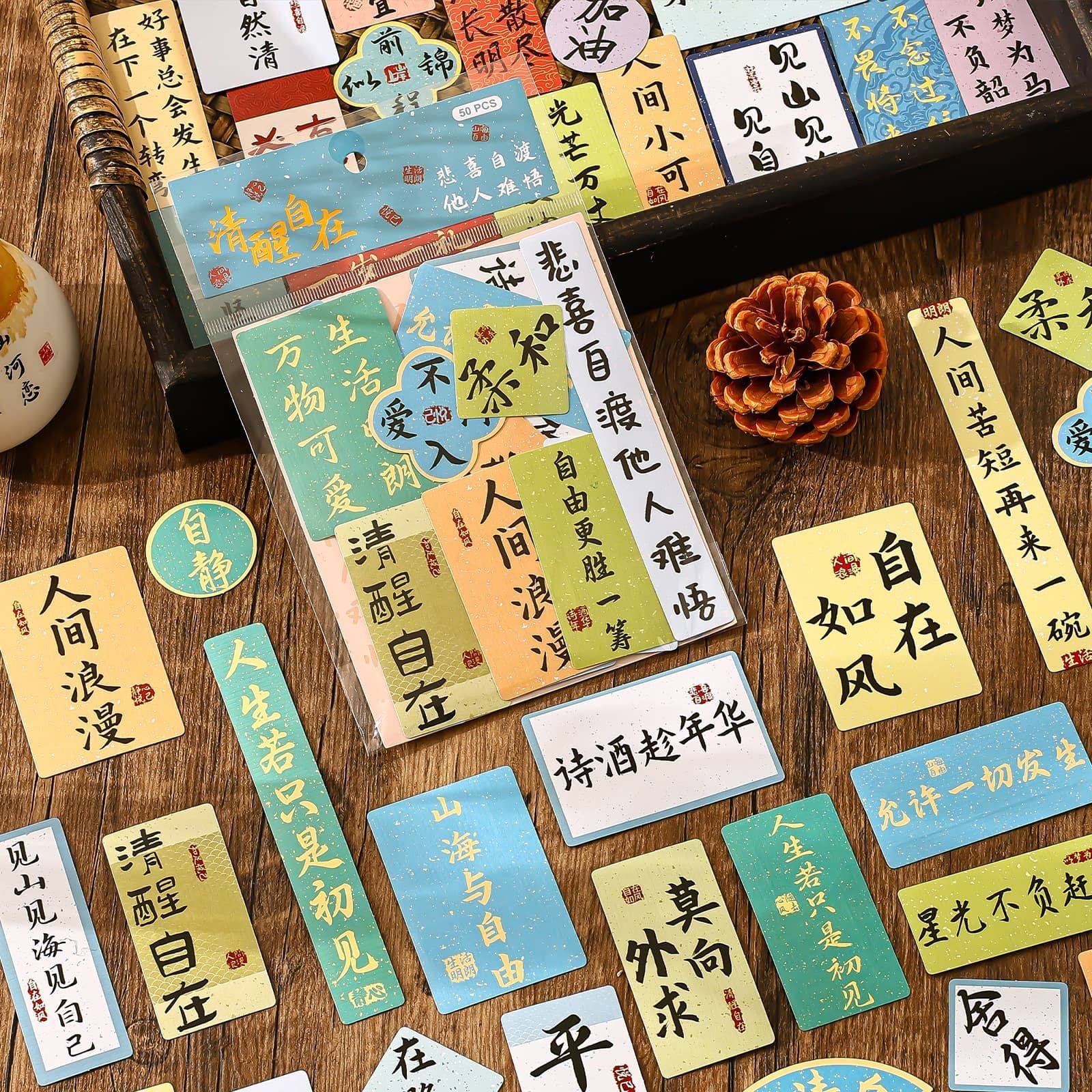 250张古风书法纸条贴纸国潮励志爆款diy手机水杯装饰桌面防水贴画