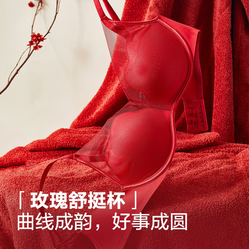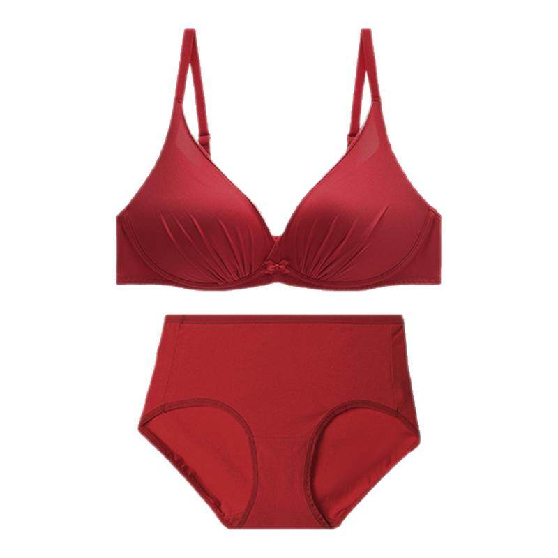 猫人本命年小胸聚拢红色内衣新款无痕显大结婚新娘文胸罩内裤套装