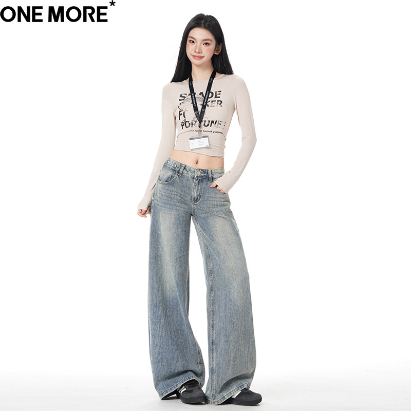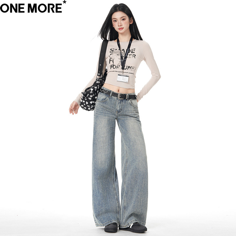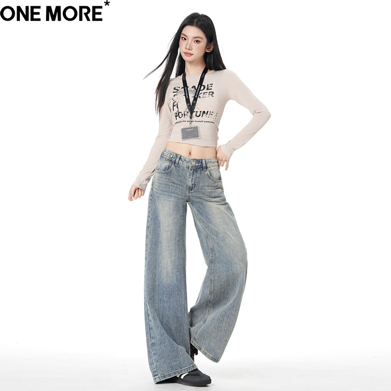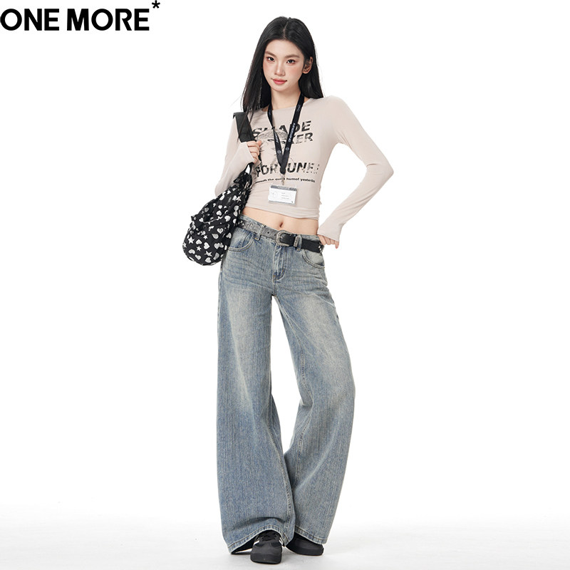 One More美式复古低腰阔腿牛仔裤女2026春夏季宽松垂感显瘦直筒裤