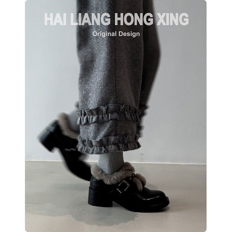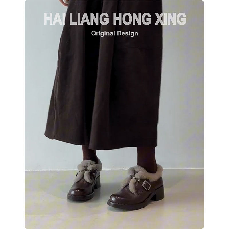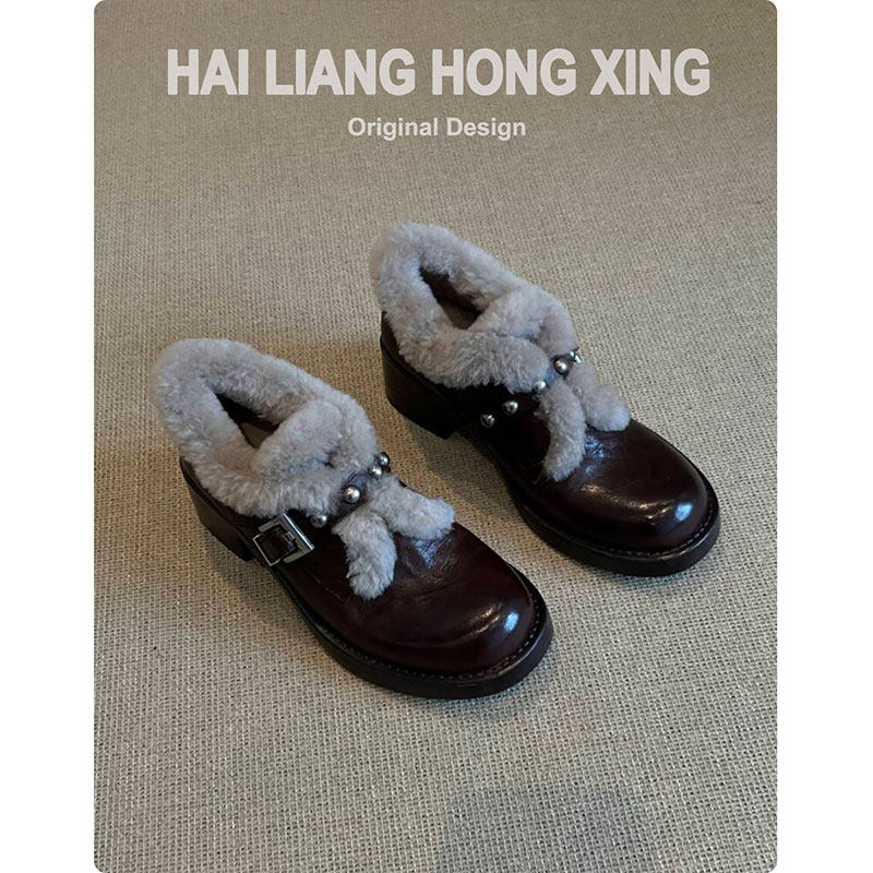 英伦风粗跟加绒乐福小皮鞋女2025秋冬新款百搭单鞋毛绒圆头中跟