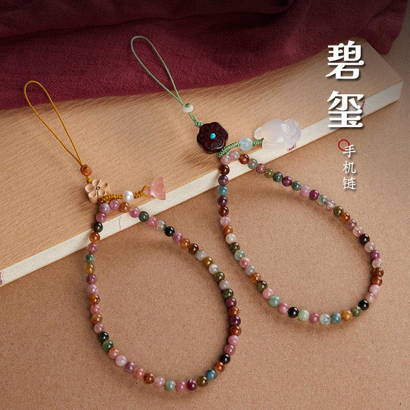 原创天然糖果色碧玺手机链挂手腕绳手机壳挂链手机挂绳链绳链条串珠女高端小众高级感挂饰时尚手机绳中国风