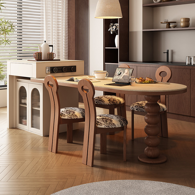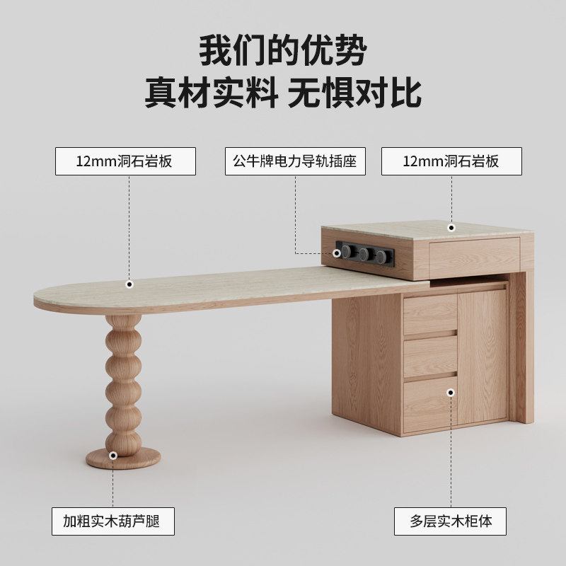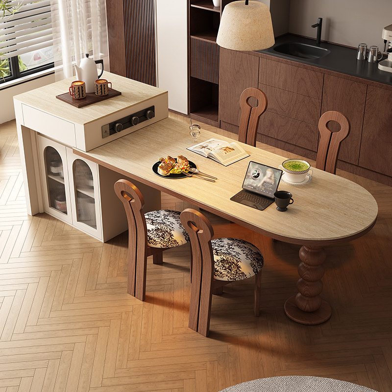 法式中古风岛台餐桌一体式餐厅厨房家用现代伸缩实木岩板岛台餐桌
