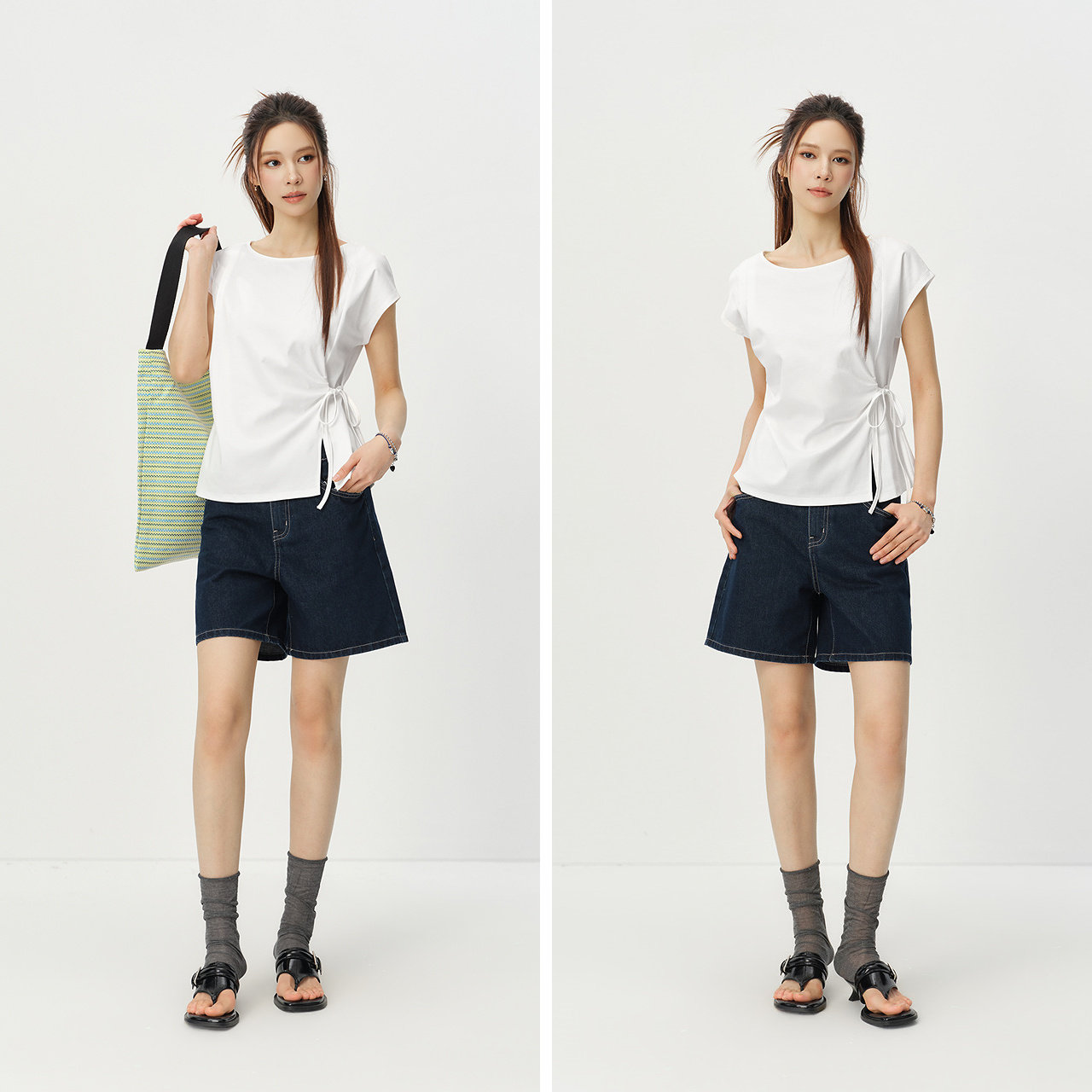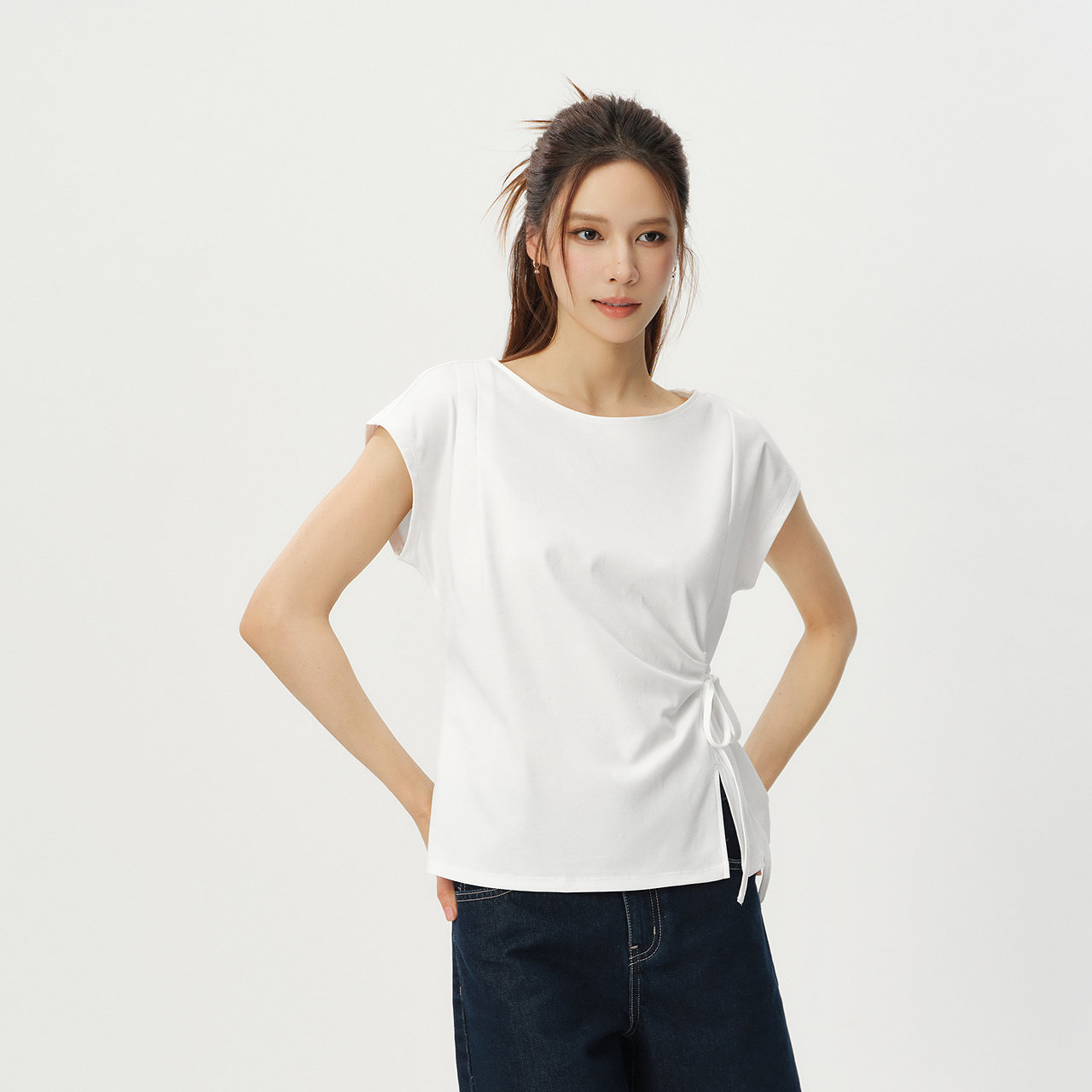 侧腰系带视觉提高腰线 可调节下摆围