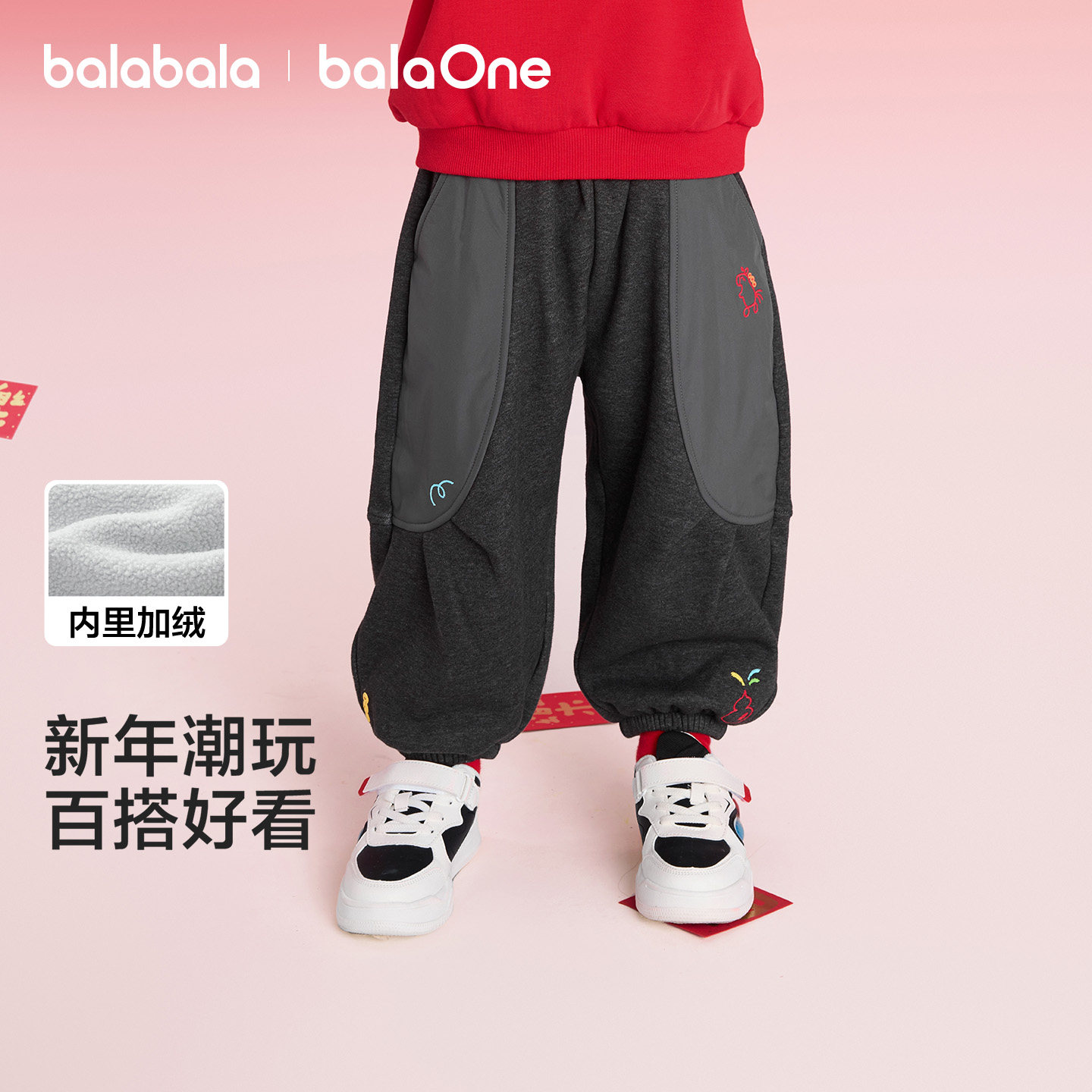 巴拉巴拉童装儿童加绒长裤男女童弯刀裤子2026新款冬装保暖拜年服