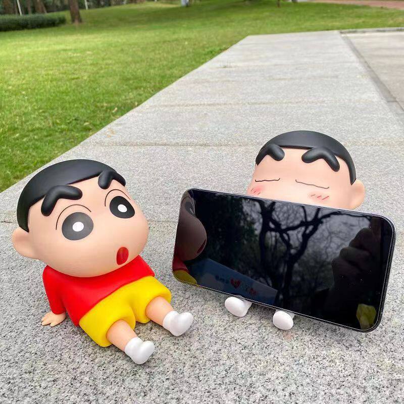 蜡笔小新手机支架懒人手办可动模型可爱桌面摆件公仔模型