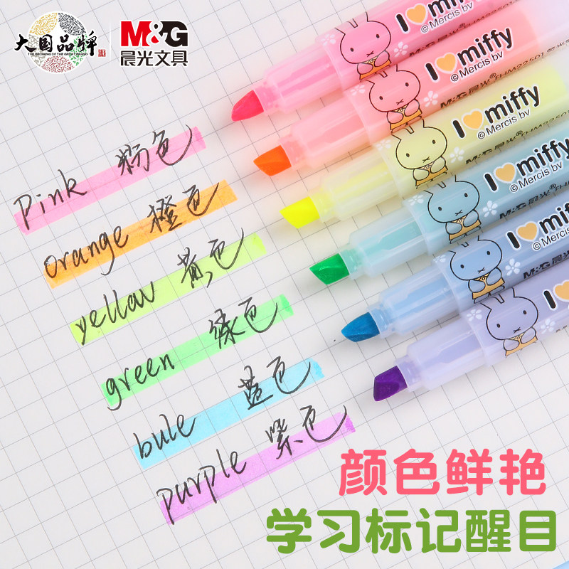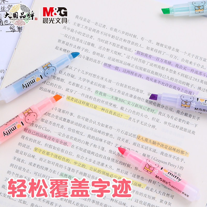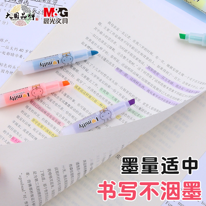 晨光荧光笔小方芯新国色荧光标记笔学生用记号笔彩色划重点专用笔