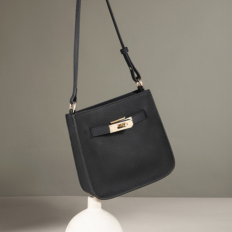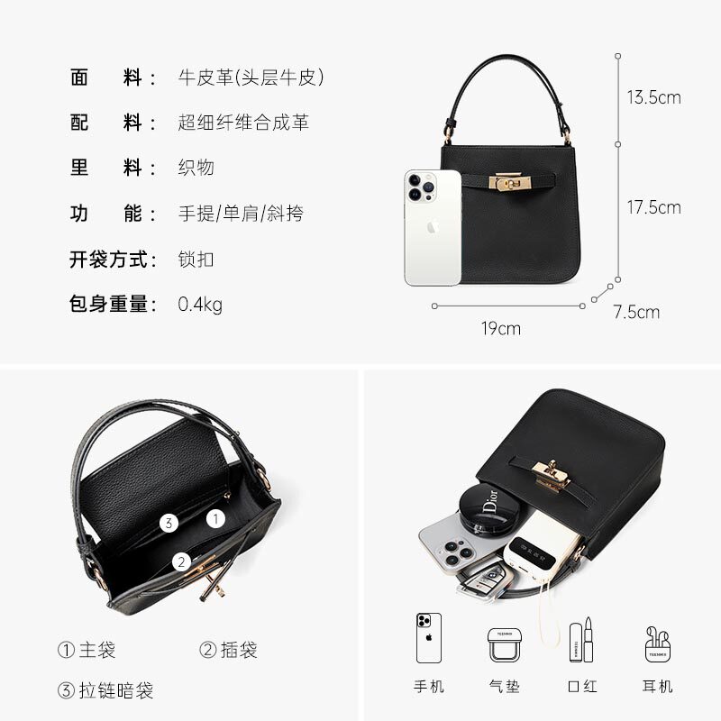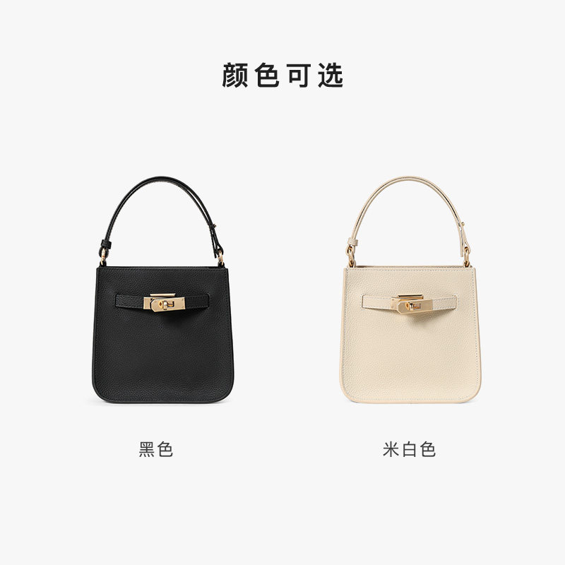 天美意真皮手提包女2025新款百搭单肩斜挎包通勤休闲大容量水桶包