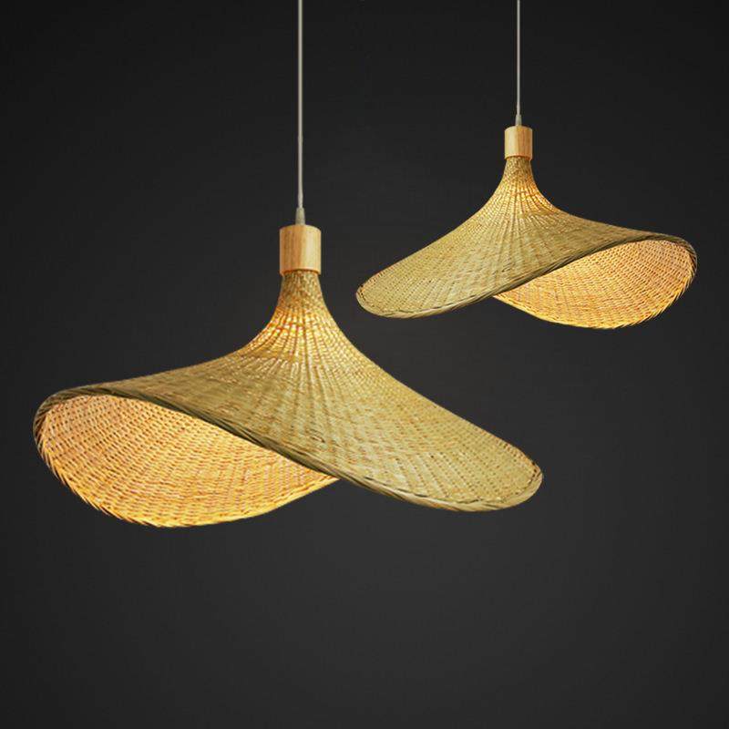新中式竹编餐厅吊灯茶室禅意火锅店民宿客厅竹艺楼梯个性草帽灯具