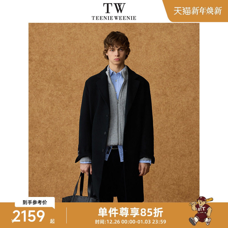 Teenie Weenie小熊男装中长款通勤简约气质毛呢大衣外套
