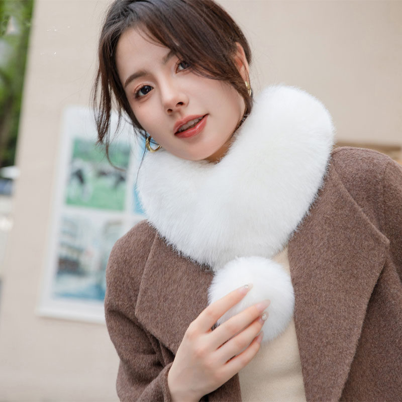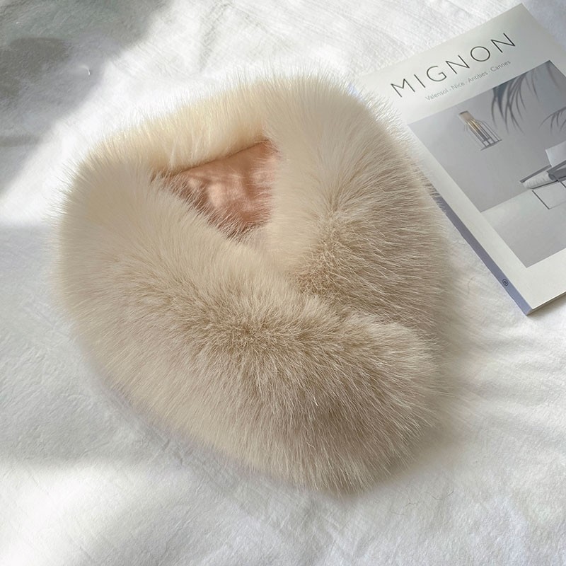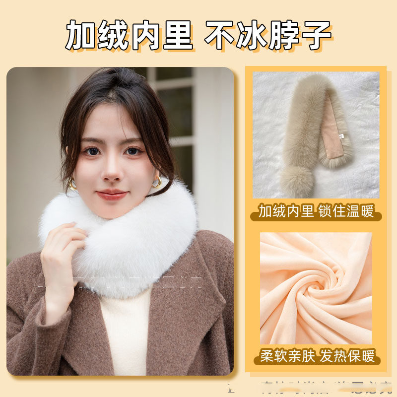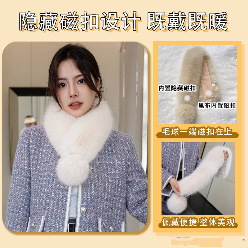 韩版狐狸毛围巾女秋冬百搭仿皮草毛领围脖磁铁吸扣毛毛奶茶色磁扣