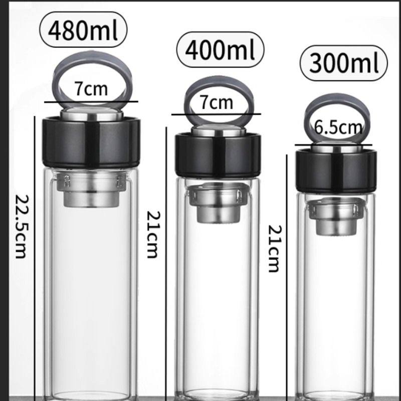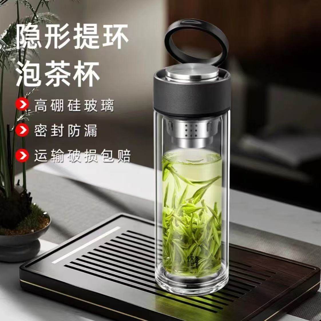 双层高硼硅玻璃杯泡茶玻璃水杯带手提环商务杯杯子大容量茶水防爆