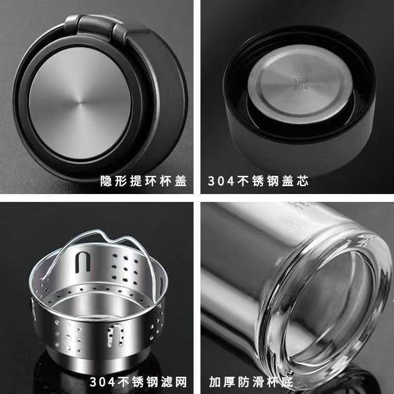 宝选一键开盖水杯车载双层玻璃杯男士泡茶保温速开茶水分离杯茶杯