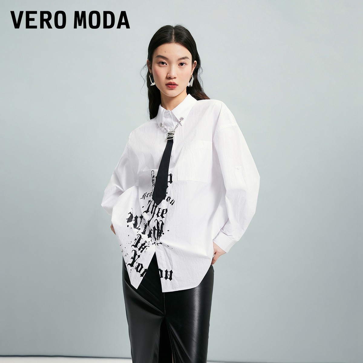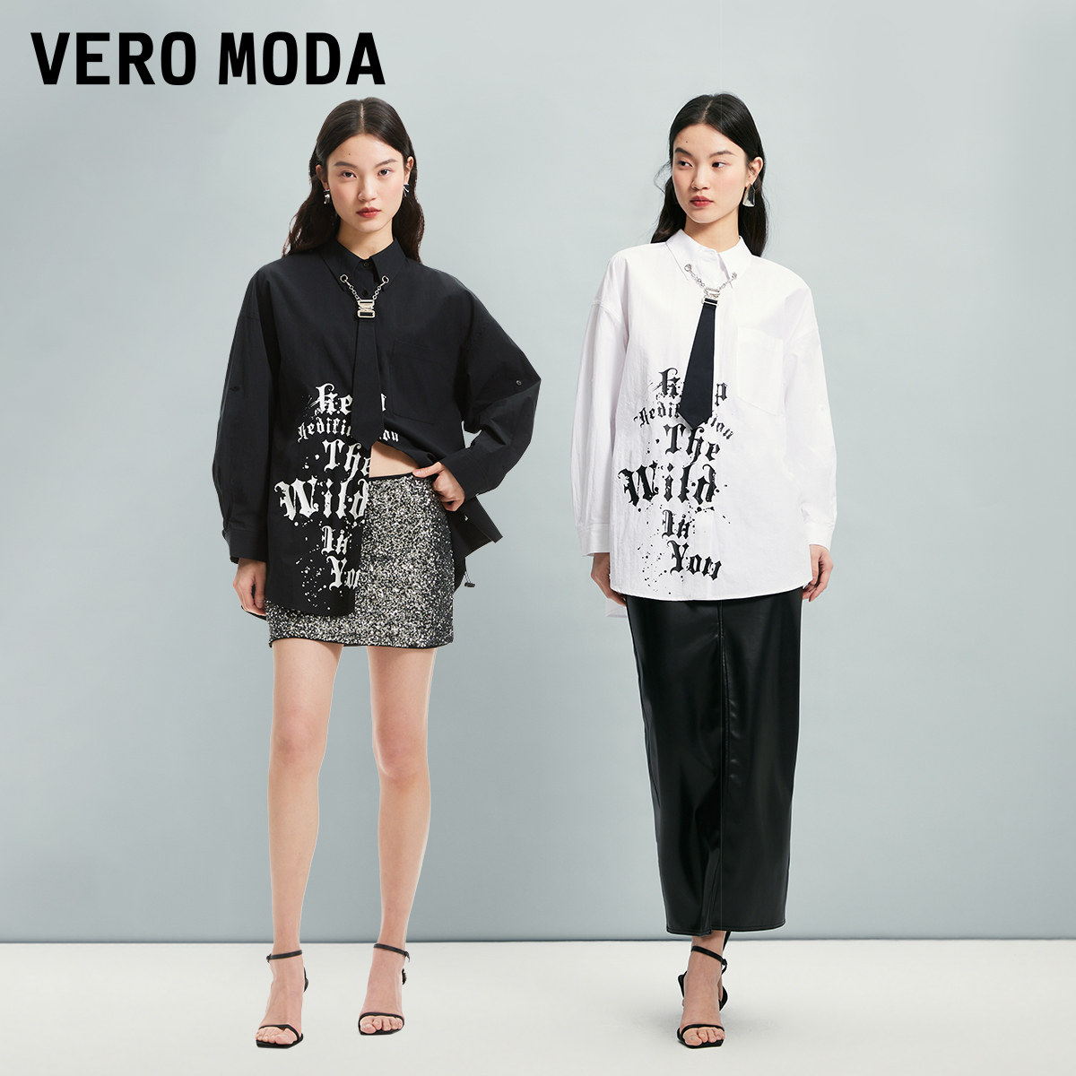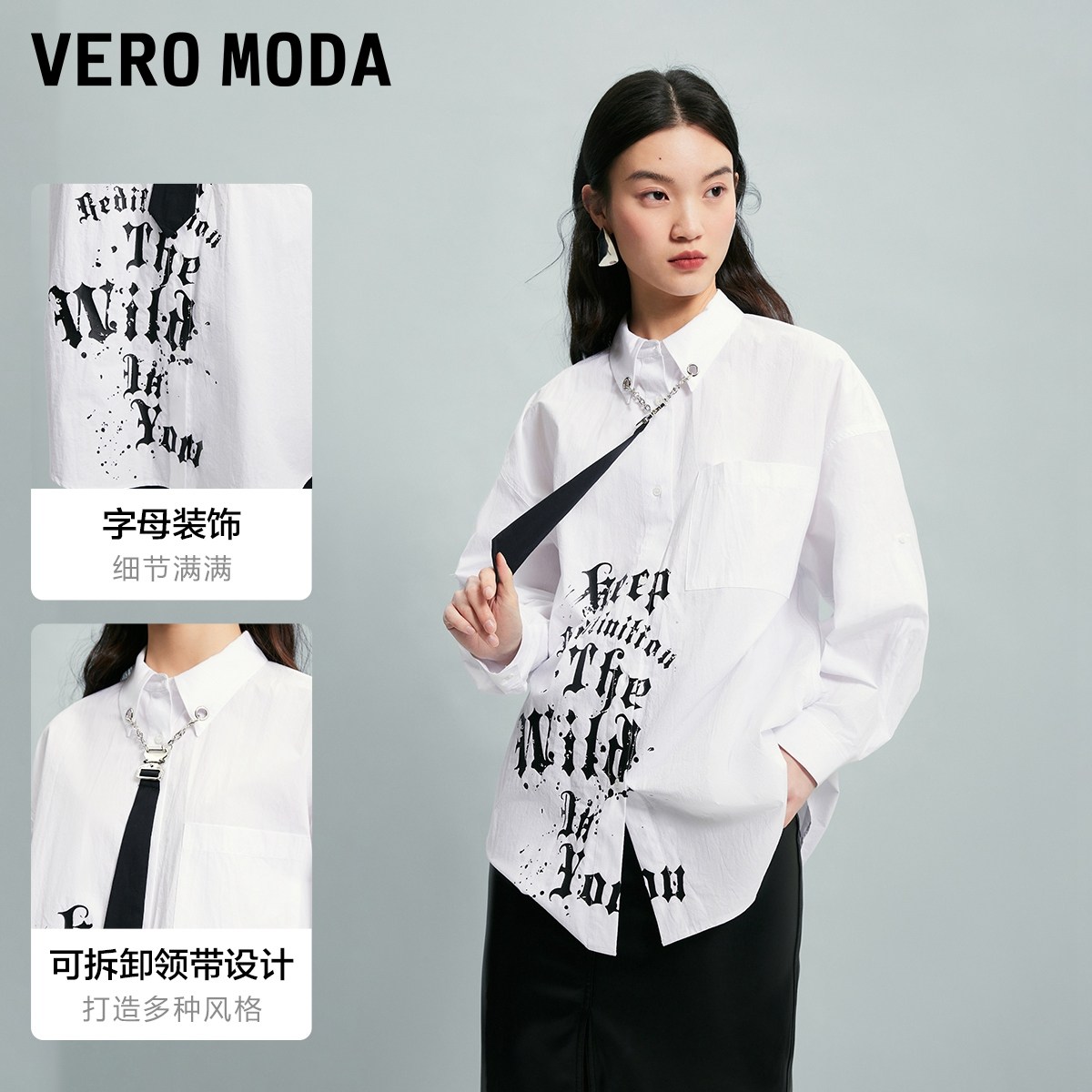 Vero Moda奥莱衬衫女秋季新款宽松翻领字母简约个性时尚百搭上衣