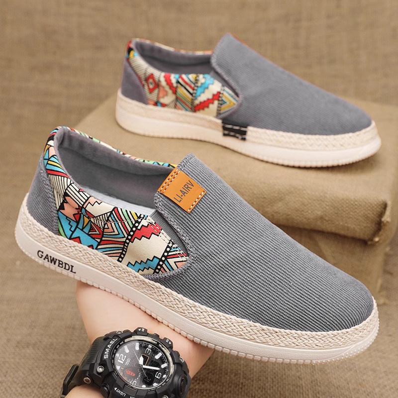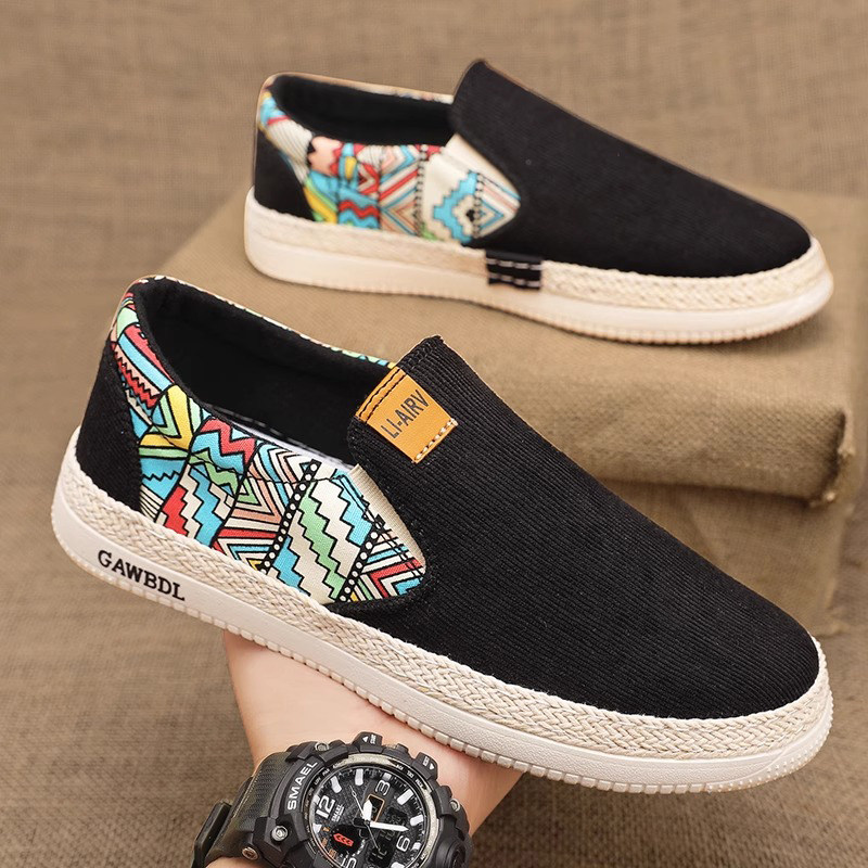 老北京布鞋男士2025新款夏秋透气休闲帆布鞋千层底一脚蹬薄款潮鞋