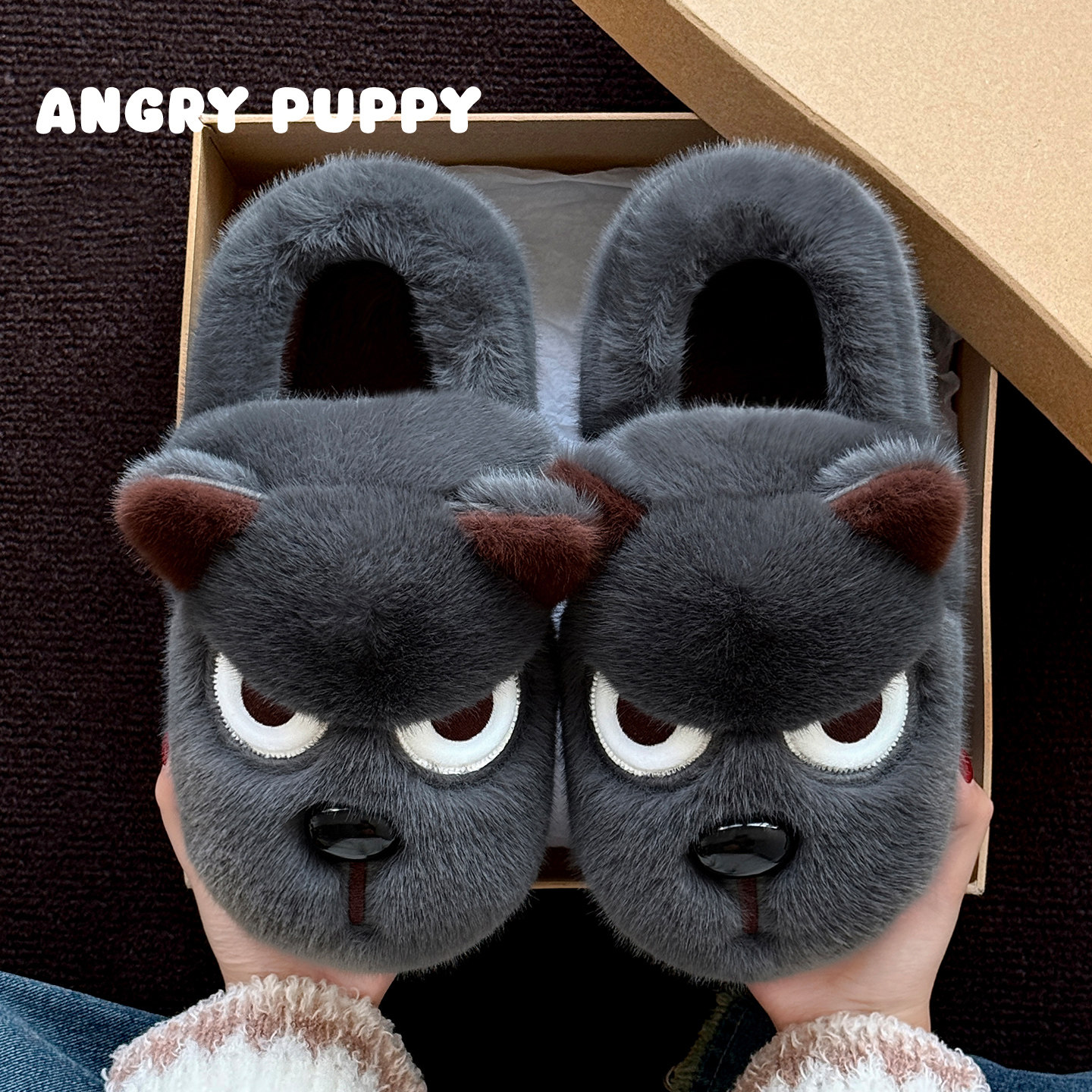 生气小狗棉拖鞋男士冬季2025新款居家室内厚底毛绒绒保暖包跟棉鞋