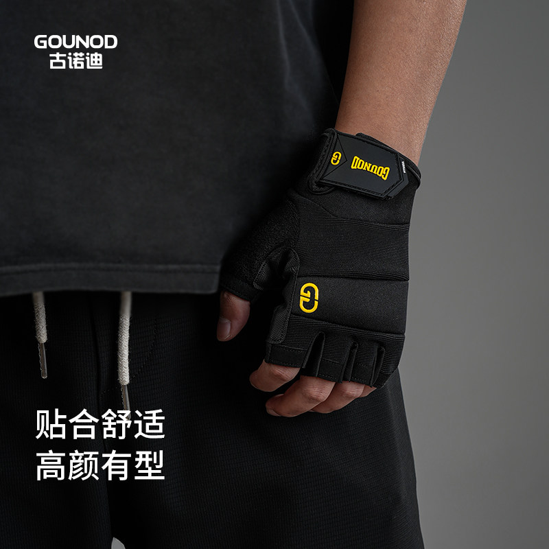 GOUNOD运动健身手套男士防起茧器械训练防滑引体向上哑铃半指专业