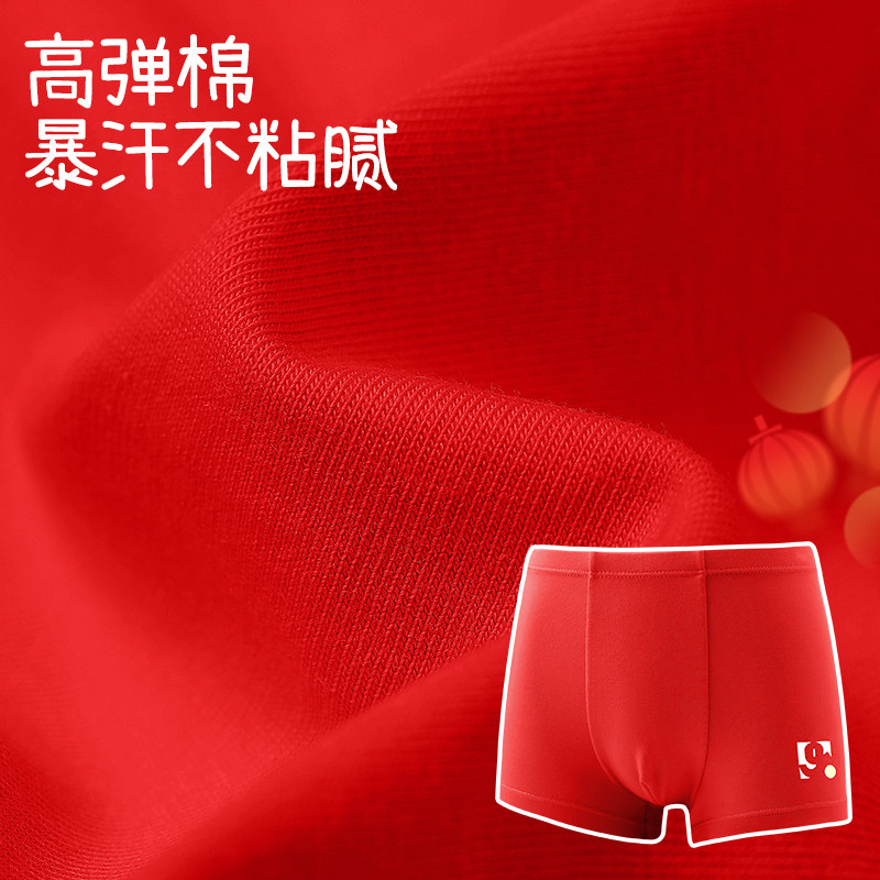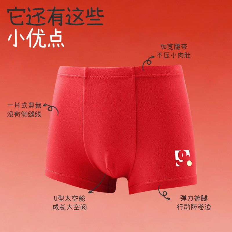 久岁伴儿童内裤男童红色纯棉短裤中大童本命年透气平角裤2条装