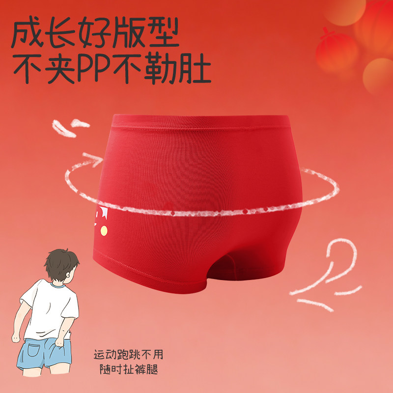 儿童内裤男童红色内裤纯棉平角三角宝宝小中大童12岁13岁学生短裤
