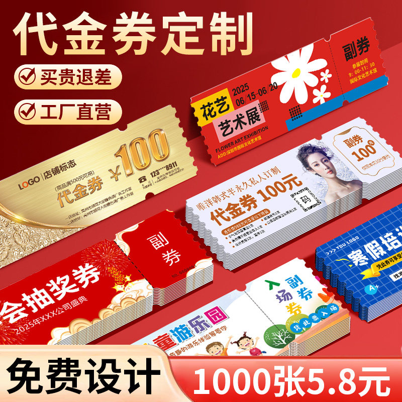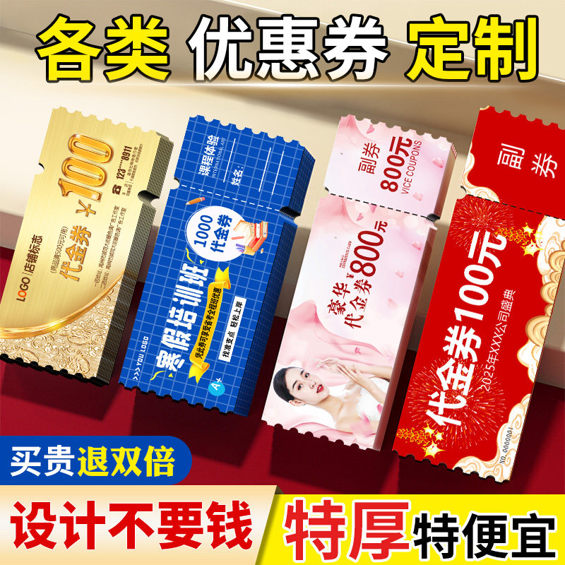 代金券优惠券定制制作订做体验卡券门票正副抽奖券免费设计定做印刷外卖美甲养生馆美容院拓客开业宣传卡片